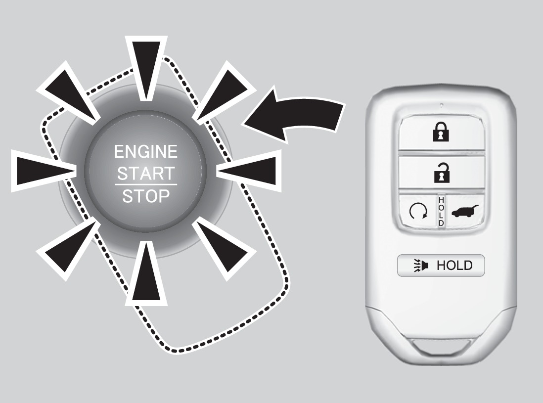 - Touch the back of the remote transmitter to the ENGINE START/STOP button while the indicator is flashing.