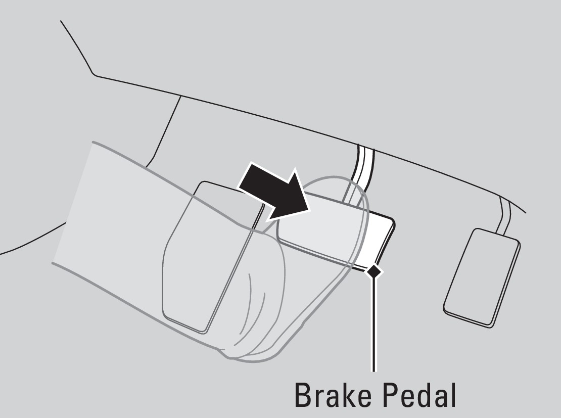 Starting the engine: Press and hold the brake pedal, then press the ENGINE START/STOP button. Keep your foot firmly on the brake pedal when starting the engine.