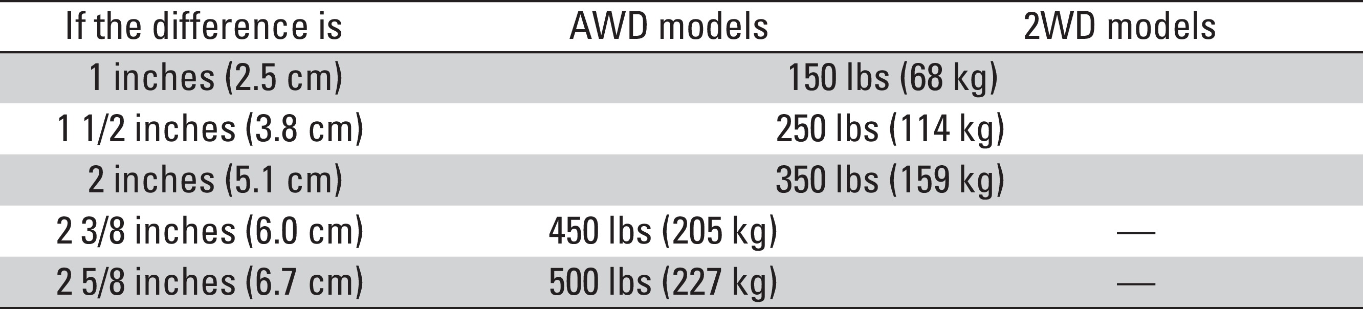 If the difference becomes more than indicated in the table, distribute the load or remove cargo as needed.