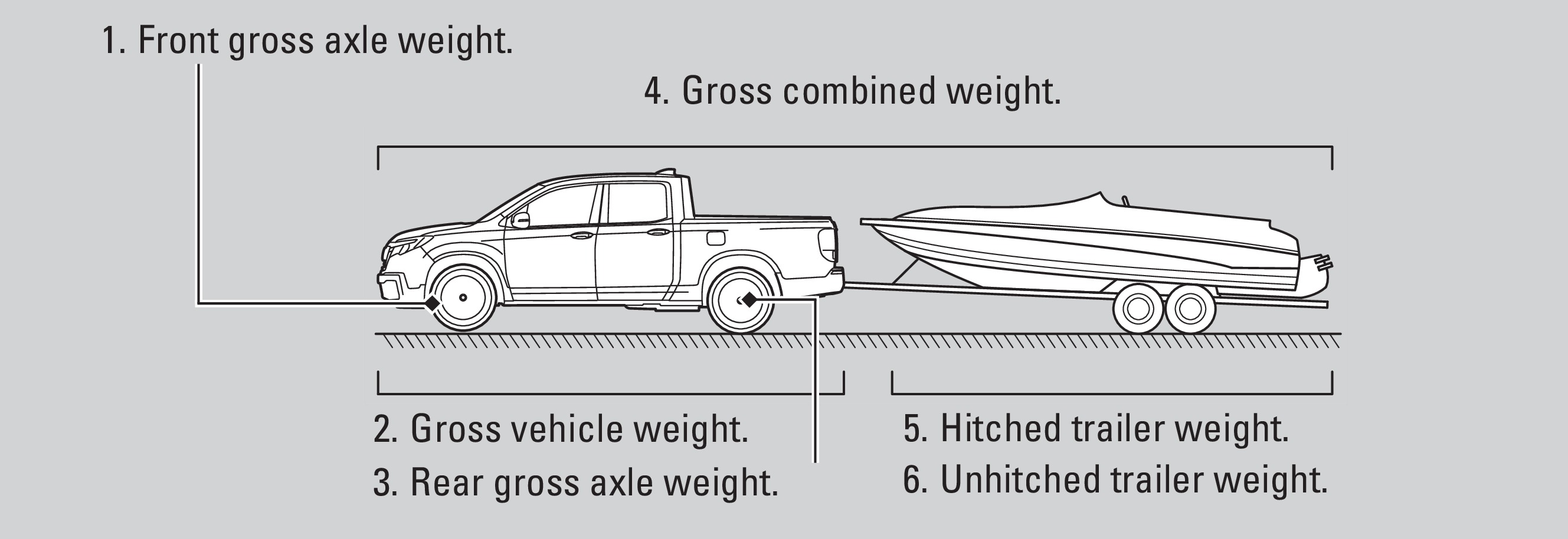 Check each weight in the order indicated as shown. Refer to the table below for each weight's limit except for the tongue load.