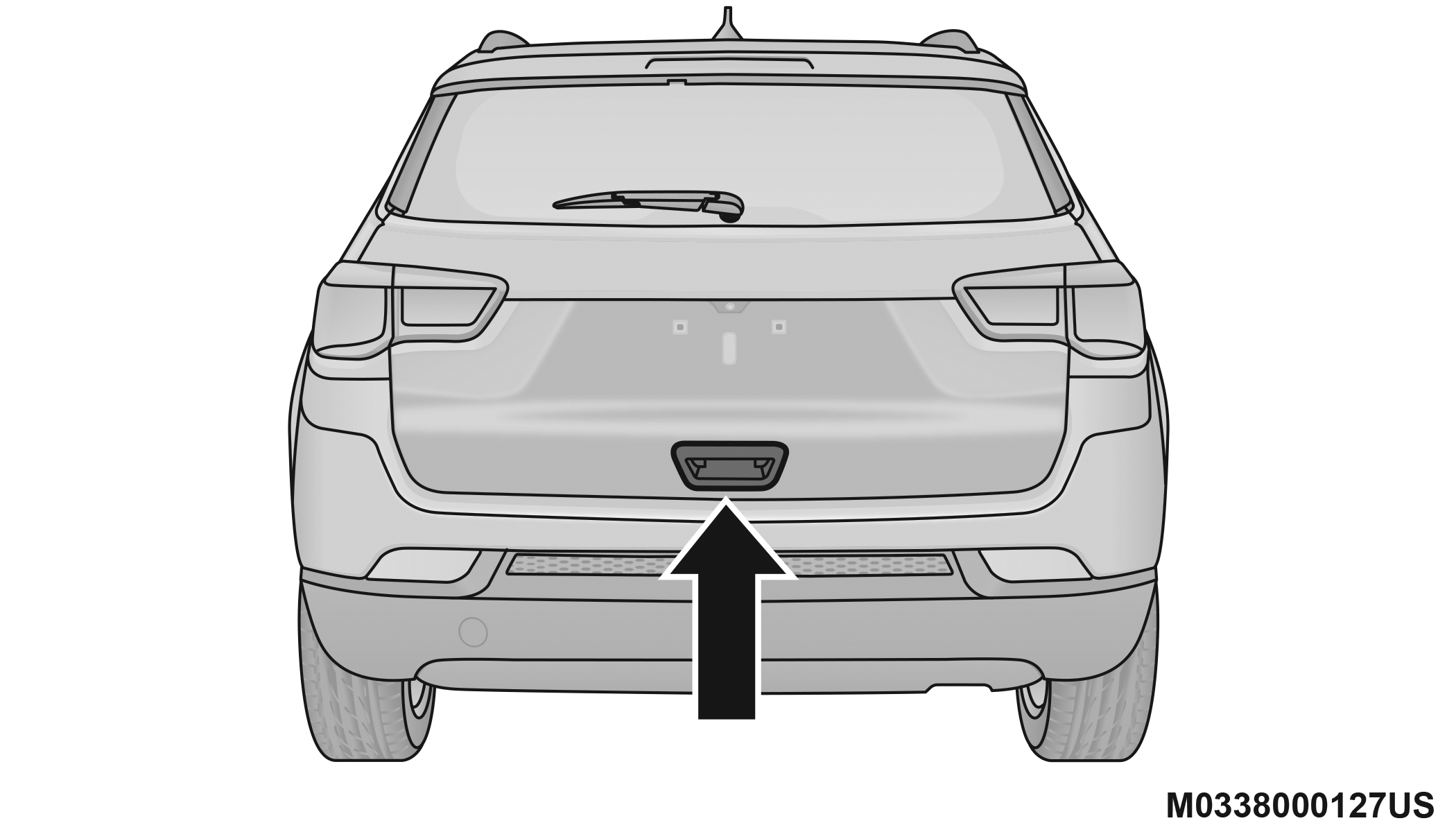 The liftgate will either unlock along with the vehicle doors, or it will need to be unlocked by pushing the electronic liftgate release, depending on the selected setting in the Uconnect system "⇨UCONNECT SETTINGS".
