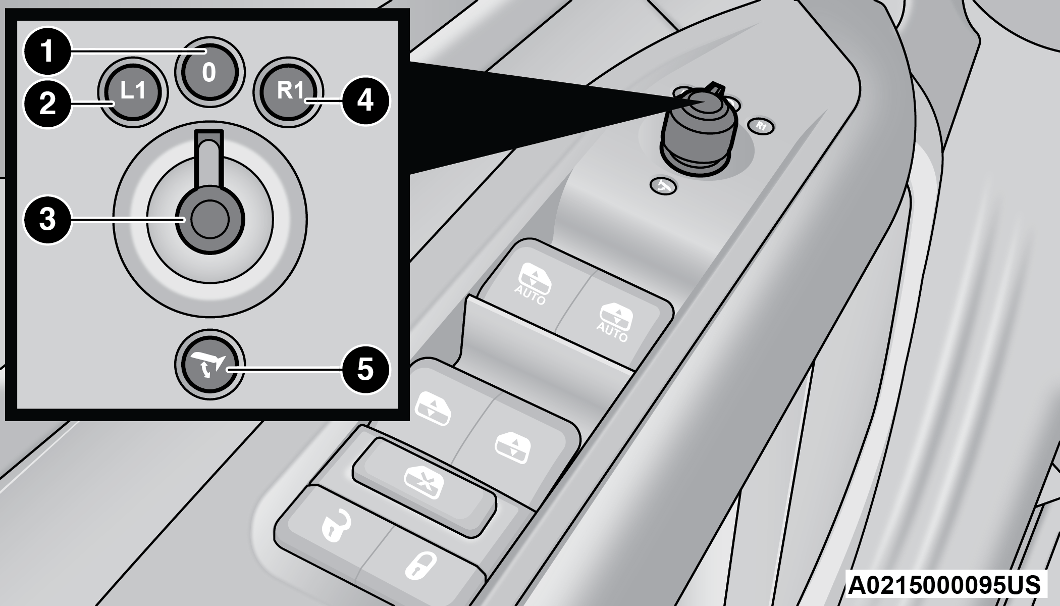 To adjust a mirror, rotate the control switch to the desired mirror: (L) or (R). Then push the switch in the direction that you want the mirror to move.