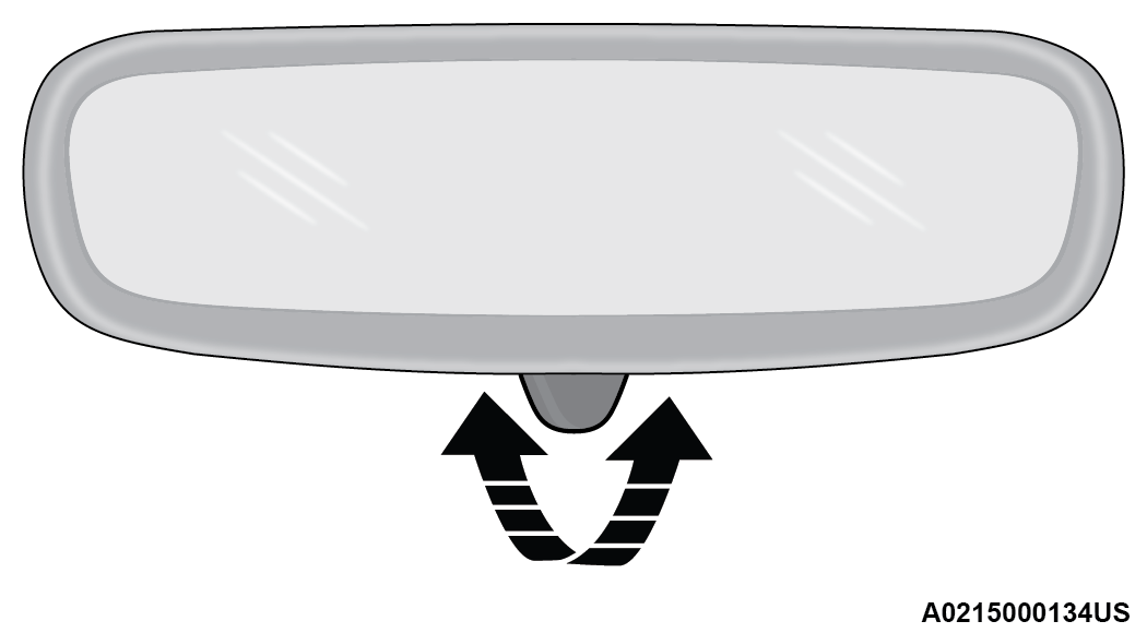 Headlight glare from vehicles behind you can be reduced by moving the small control under the mirror to the night position (toward the rear of the vehicle). The mirror should be adjusted while set in the day position (toward the windshield).