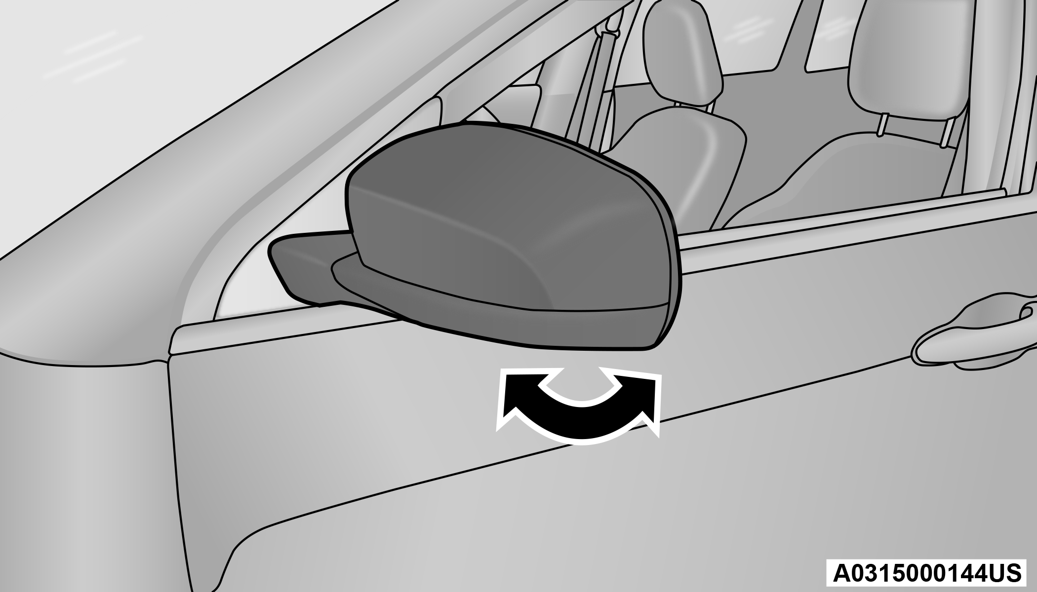 The exterior mirrors are hinged to allow the mirror to pivot forward or rearward to help avoid damage. The mirror has three detent positions: full forward, normal and full rearward.