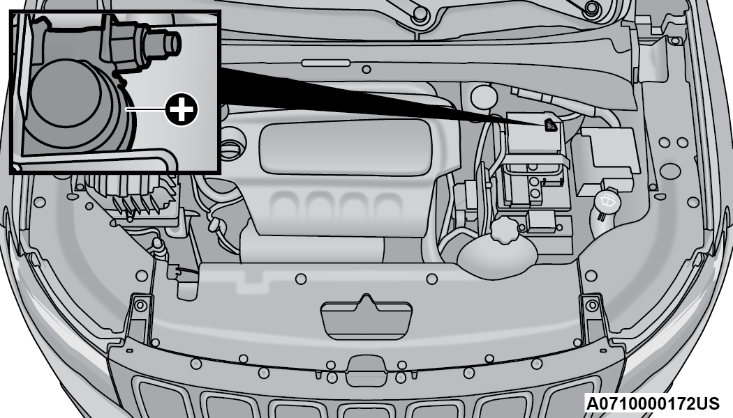 The positive (+) battery post is covered with a protective cap. Lift up on the cap to gain access to the post.