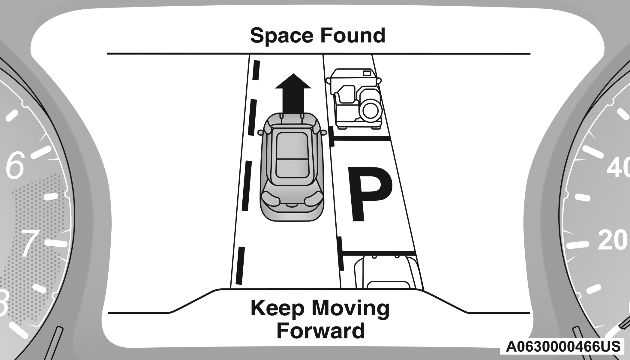 When an available parking space has been found, and the vehicle is not in position, you will be instructed to move forward to position the vehicle for a perpendicular or parallel parking sequence (depending on the type of maneuver being performed).