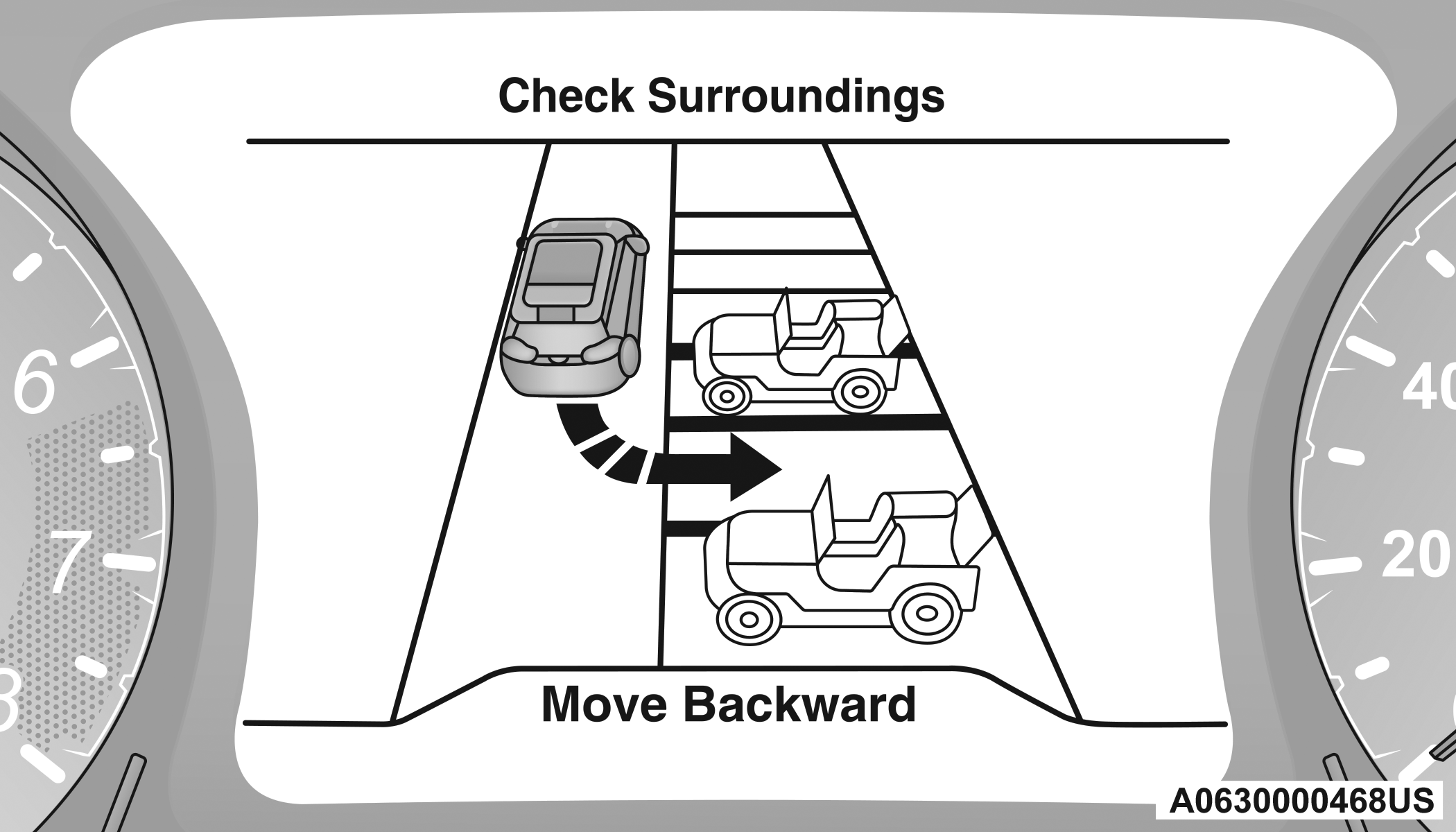 During the maneuver, the system asks the driver to shift to REVERSE, and operate the turn signal in the direction you want to exit. Let go of the steering wheel and use the brake or accelerator pedals while the system handles the steering automatically for exiting the parking space. If the driver continues to carry out a voluntary or involuntary action on the steering wheel during the exit maneuver (touching or holding the steering wheel to prevent its movement), the maneuver will be interrupted.