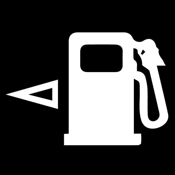 The fuel pump symbol points to the side of the vehicle where the fuel door is located.
