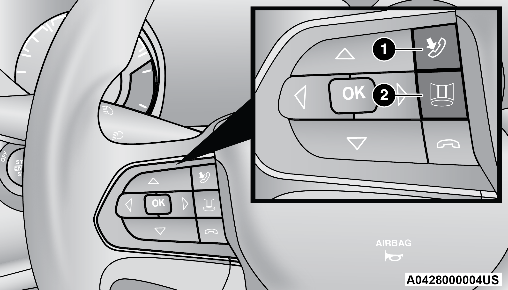 is used to activate/deactivate your Voice Recognition system. You can also use the system’s “Wake Up” word to activate voice recognition. The Wake Up word can be set through the Uconnect Settings "⇨UCONNECT SETTINGS".