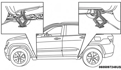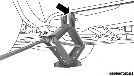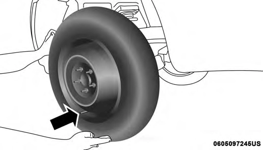 Block both the front and rear of the wheel diagonally opposite of the jacking position. For ex- ample, if changing the right front tire, block the left rear wheel.- For vehicles equipped with Quadra-Lift, refer to “Quadra-Lift — If Equipped” in “Starting And Operating” for further information on disabling automatic leveling.