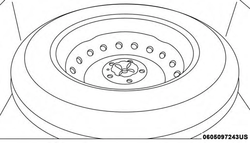 - Have the aluminum road wheel and tire repaired as soon as possible, properly secure the spare tire with the special wing nut torqued to 3.7 ft-lbs (5 N·m), reinstall the jack and tool kit foam tray, and latch the rear load floor cover.
