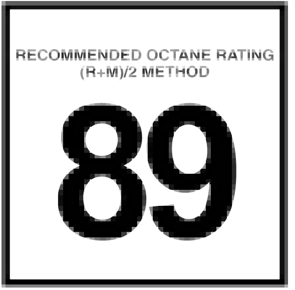 This engine is designed to meet all emissions regula- tions and provide satisfactory fuel economy and performance when using high-quality unleaded gasoline having an octane range of 87 to 89 as specified by the (R+M)/2 method. The use of 89 octane “Plus” gasoline is recommended for optimum performance and fuel economy.