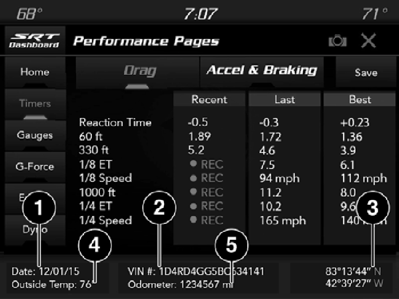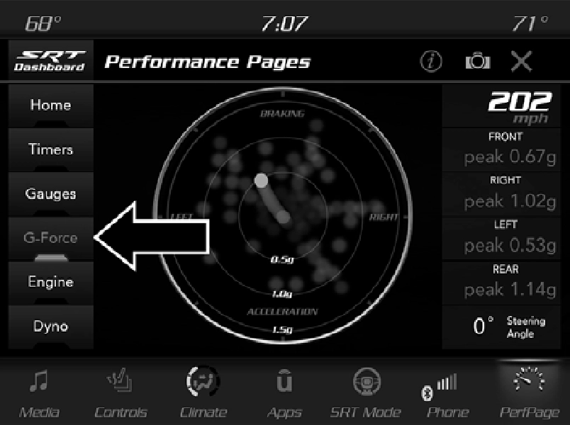Performance Pages is an application that provides a display for performance indicators that will help you gain familiarity with the capabilities of your SRT vehicle in real time.