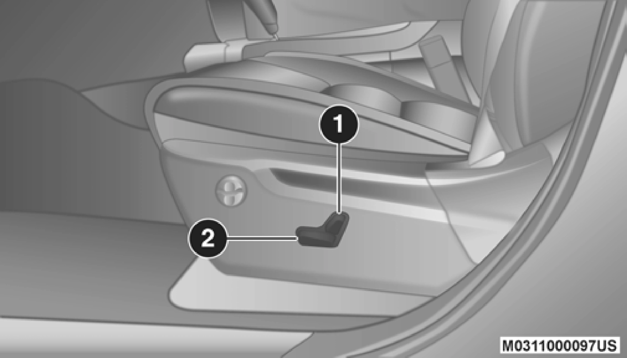 - When you place the vehicle’s ignition in the OFF position, the driver seat will move about 2.4 inches (60 mm) rear- ward if the driver seat position is greater than or equal to 2.7 inches (67.7 mm) forward of the rear stop. The seat will return to its previously set position when you place the vehicle’s ignition in the ACC or RUN position.