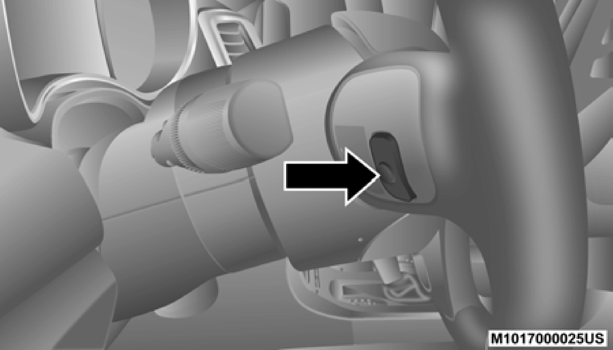 The right-hand control is a rocker-type switch with a push-button in the center and controls the volume and mode of the sound system. Pushing the top of the rocker switch increases the volume, and pushing the bottom of the rocker switch decreases the volume.
