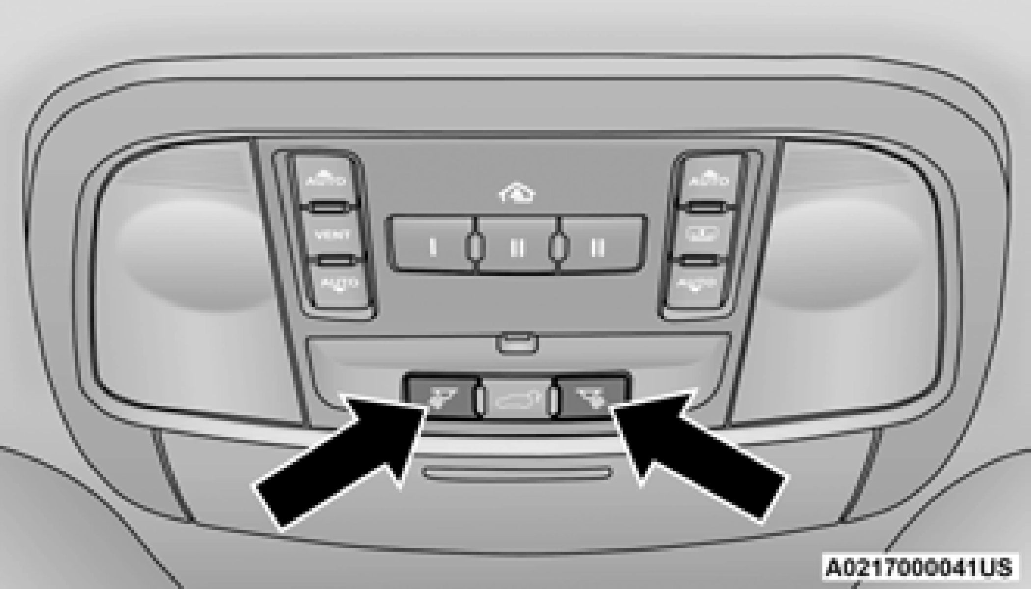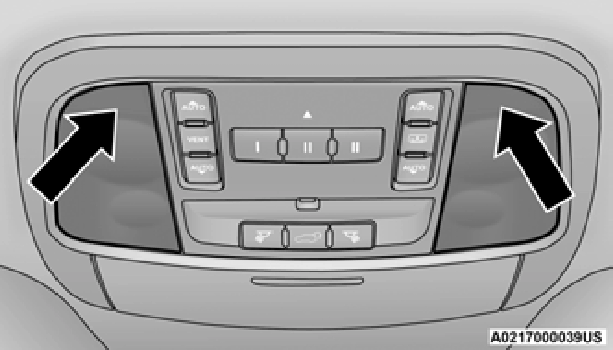 Each light can be turned on by pushing a switch on either side of the console. These buttons are backlit for night time visibility. To turn the lights off, push the switch a second time. The lights will also turn on when the unlock button on the remote keyless entry key fob is pushed.