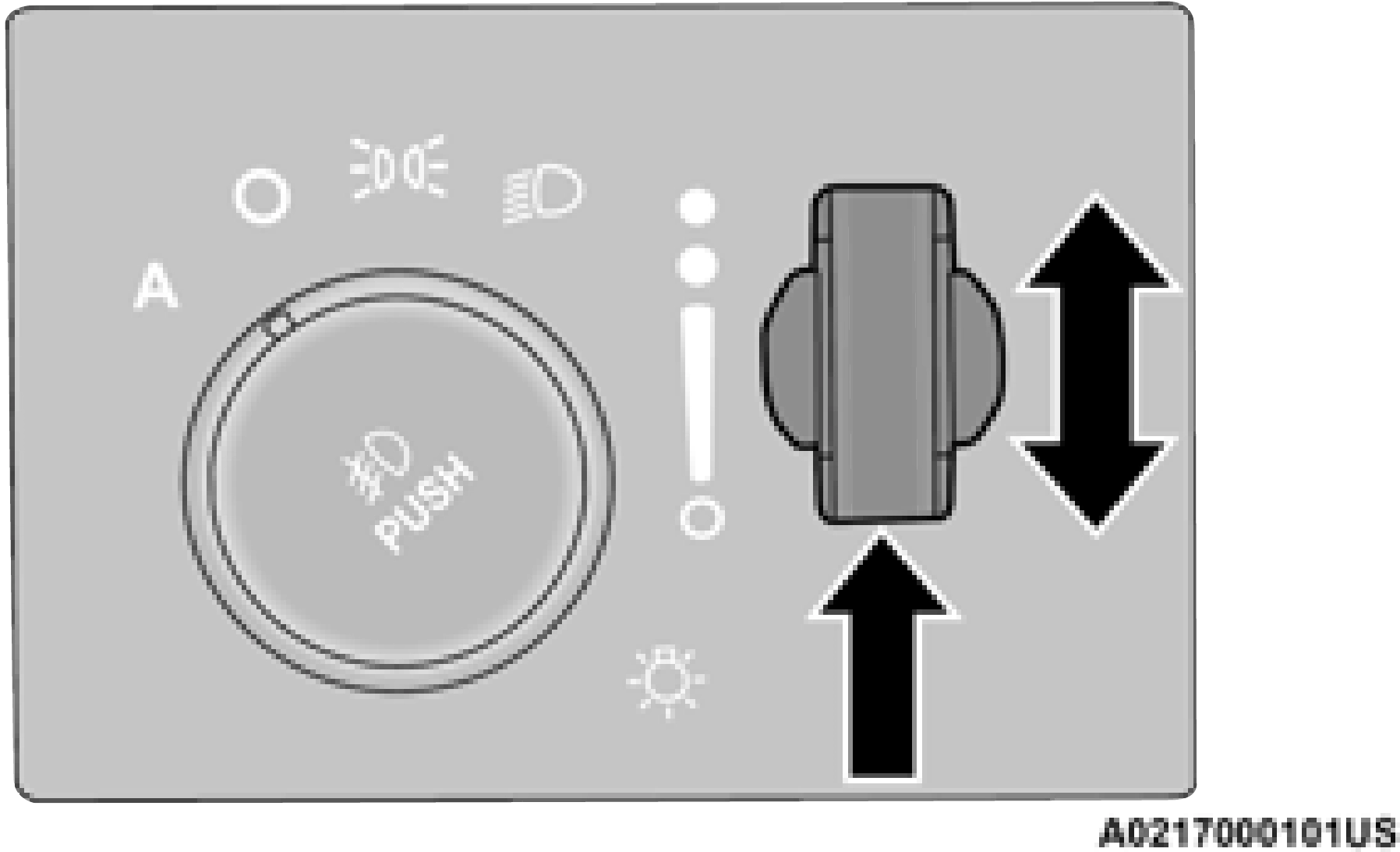 The brightness of the instrument panel lighting can be regulated by rotating the dimmer control up (brighter) or down (dimmer). When the headlights are on you can supplement the brightness of the instrument cluster display, radio and overhead console by rotating the control to the first detent up until you hear a