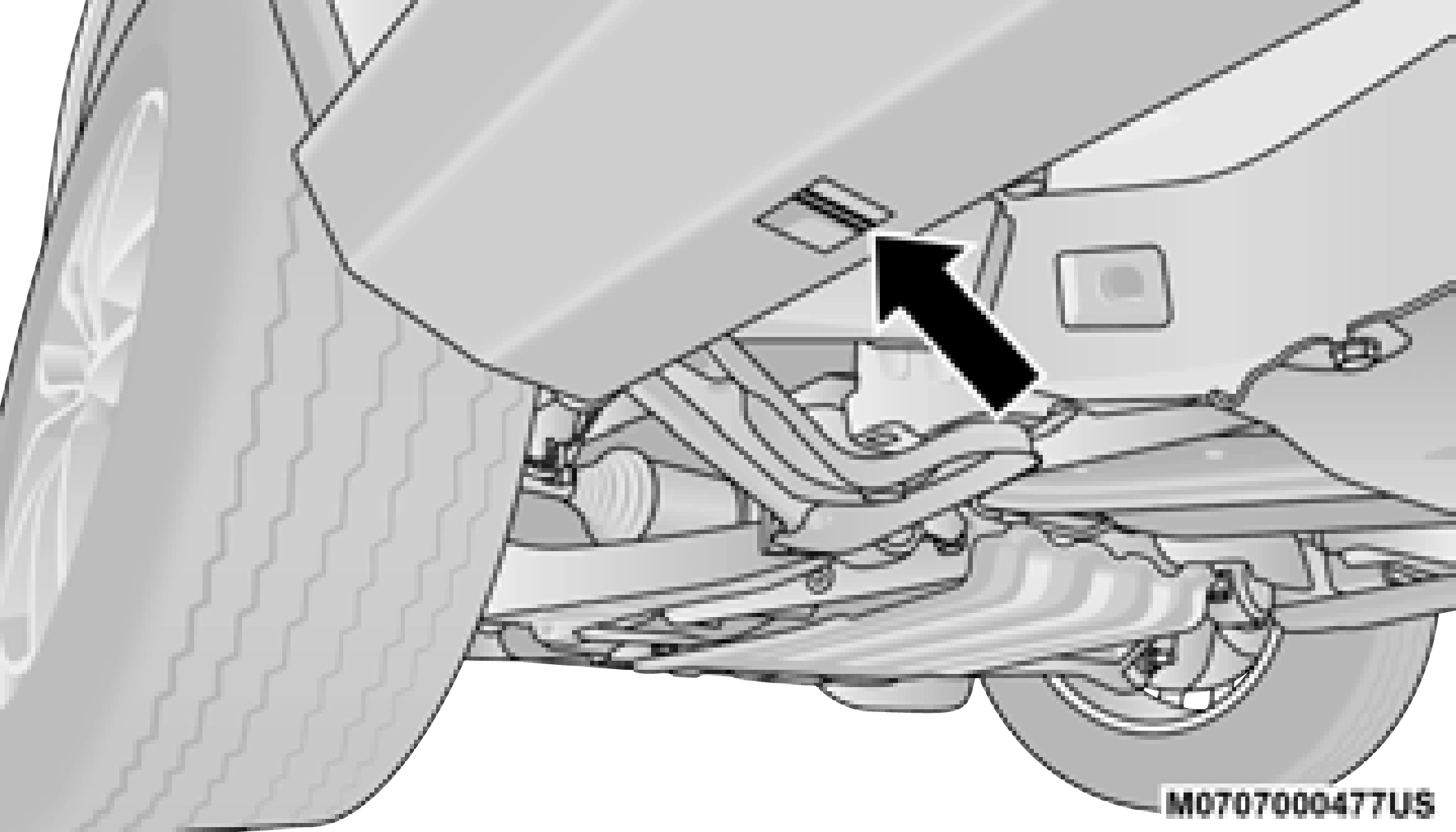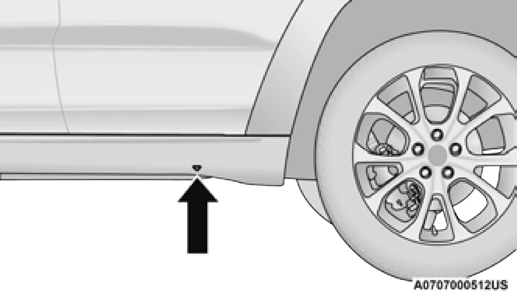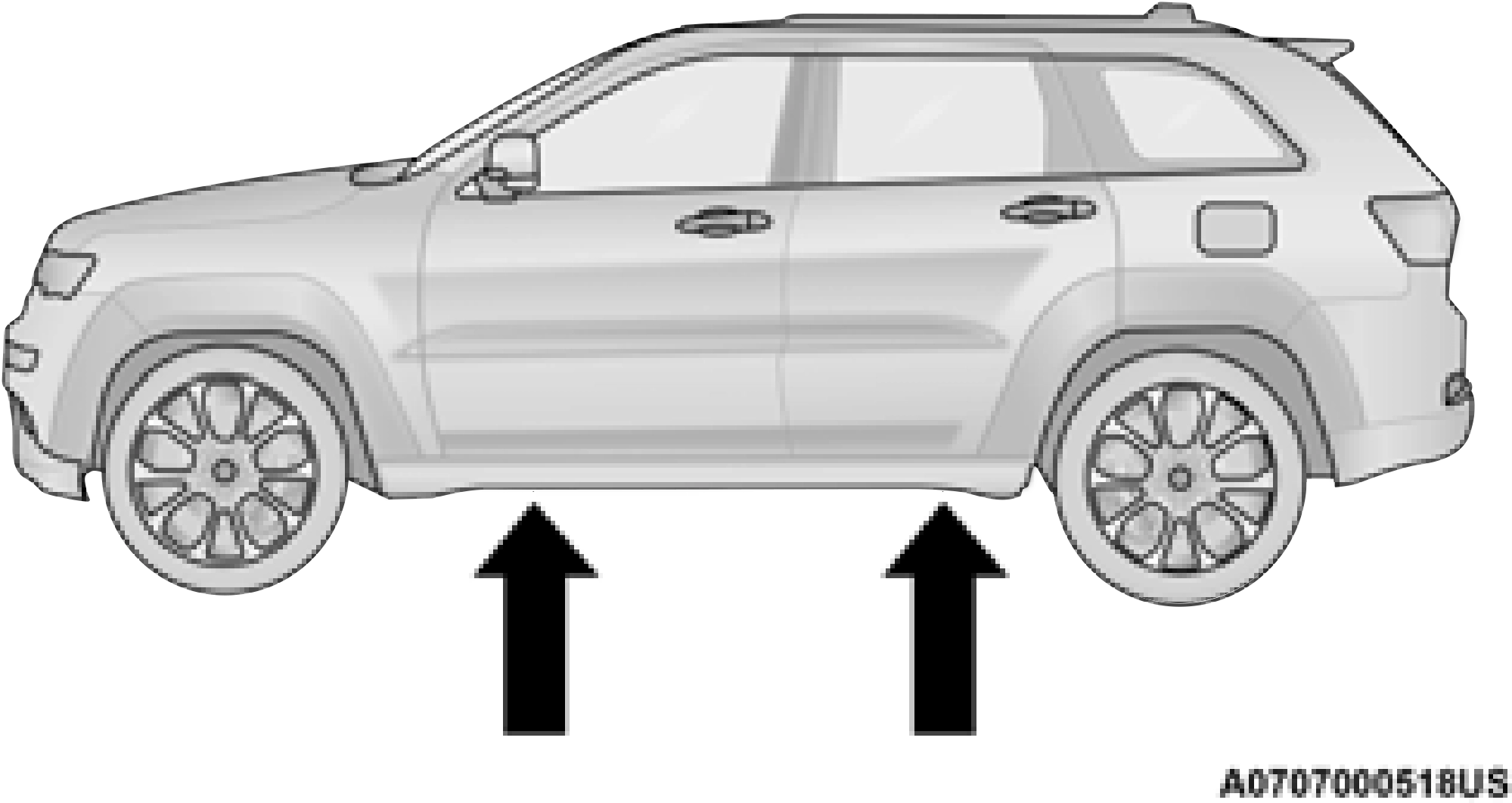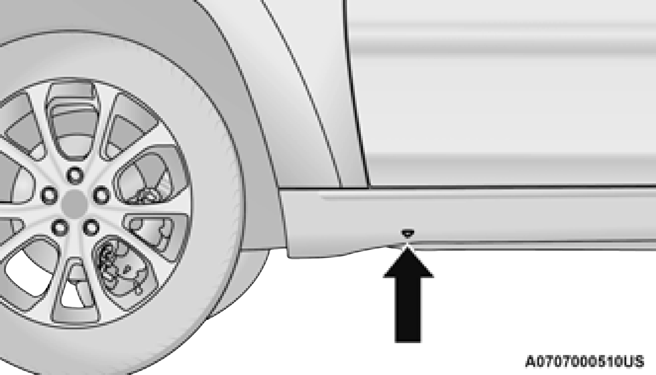 Depending on vehicle trim level, certain models come equipped with Rock Rails which have a different front lifting point location. Also, the triangular symbols are not visible for this trim package.