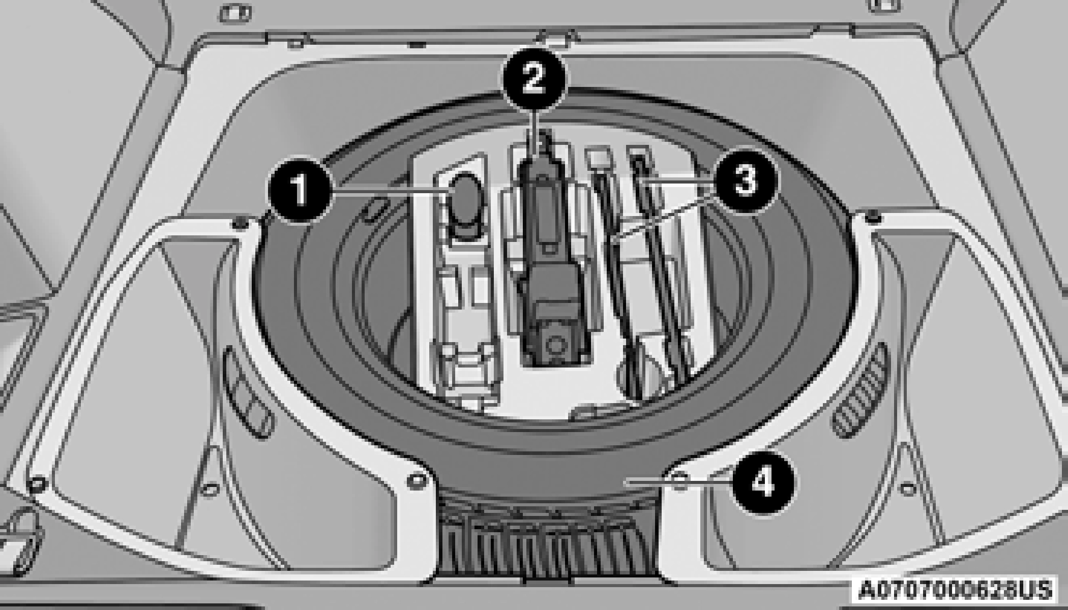 SPARE TIRE STOWAGE — IF EQUIPPED