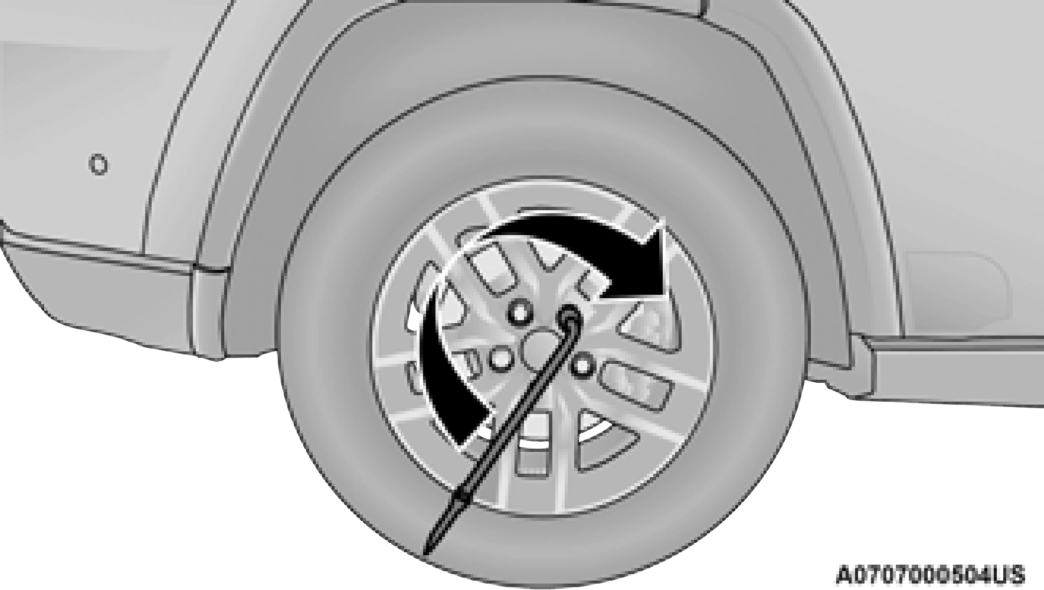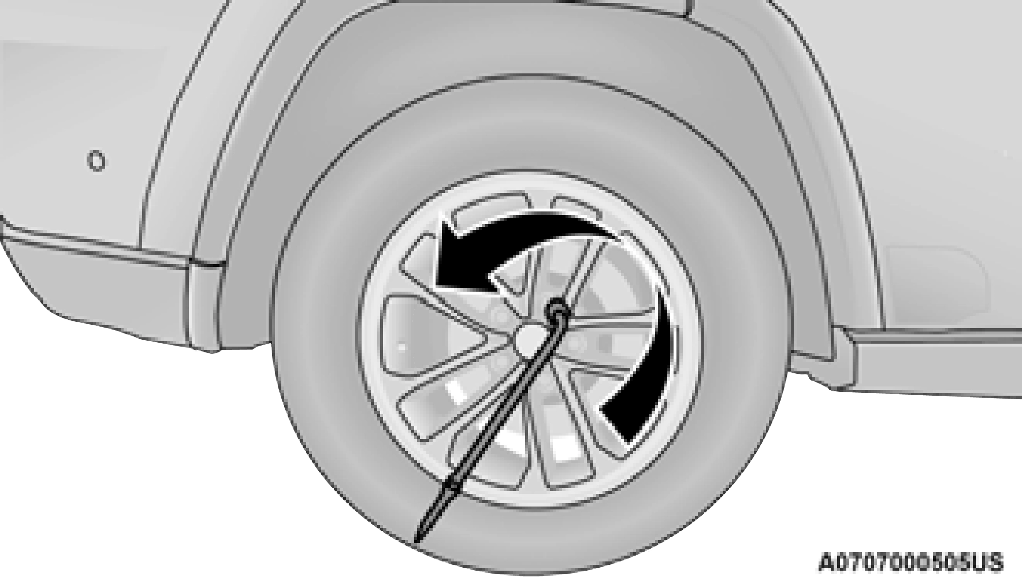 Loosen (but do not remove) the wheel lug nuts, using the lug wrench by turning them counterclockwise, one turn, while the wheel is still on the ground.