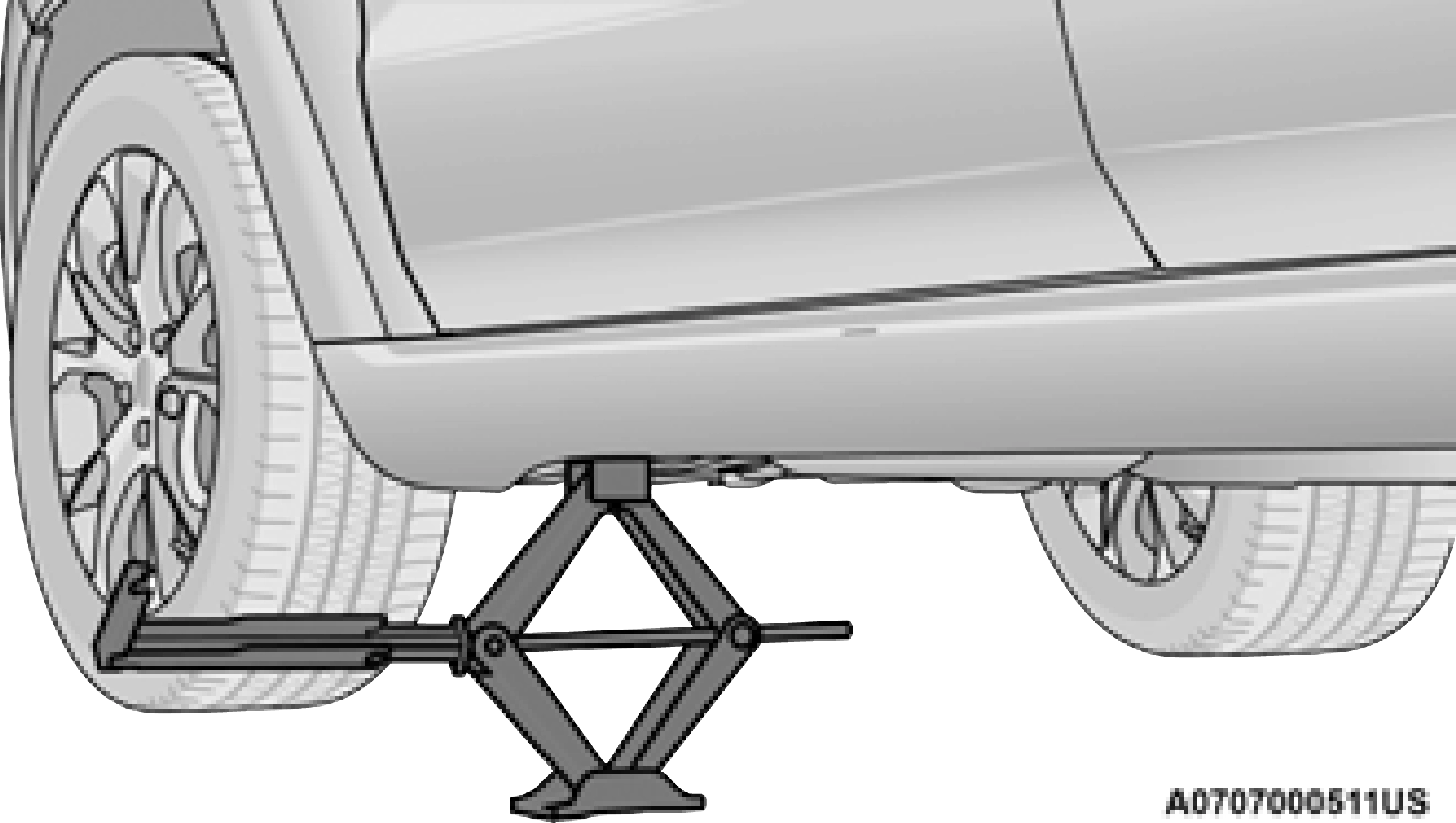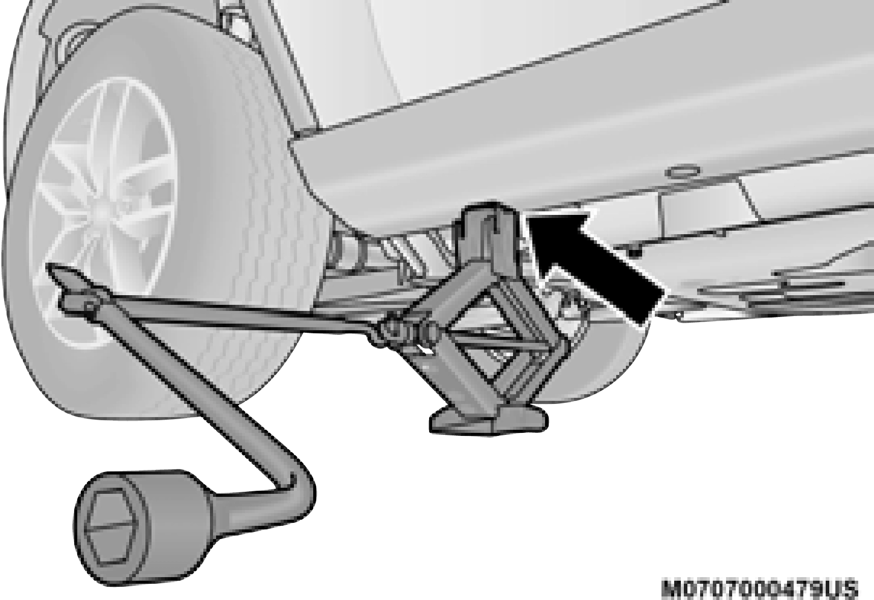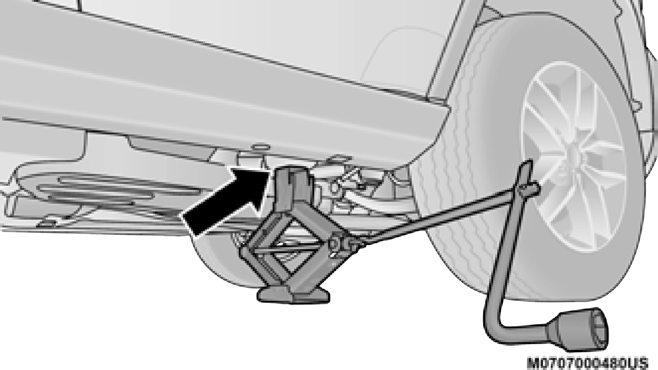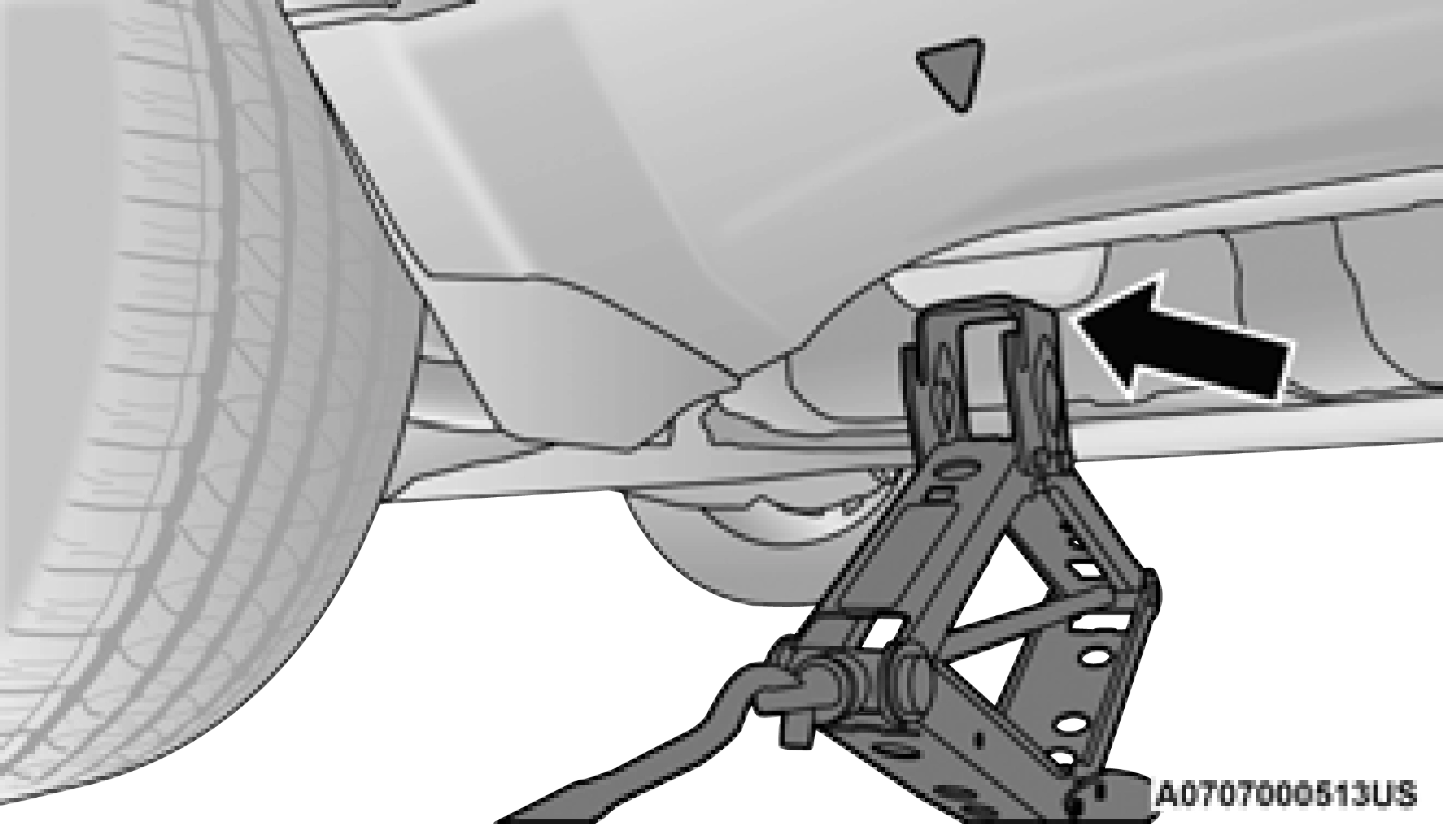 The jack must be placed straight on with handle facing outwards. See the following Front Jacking Location images for reference. The position of the front jack is the same for all trim levels.