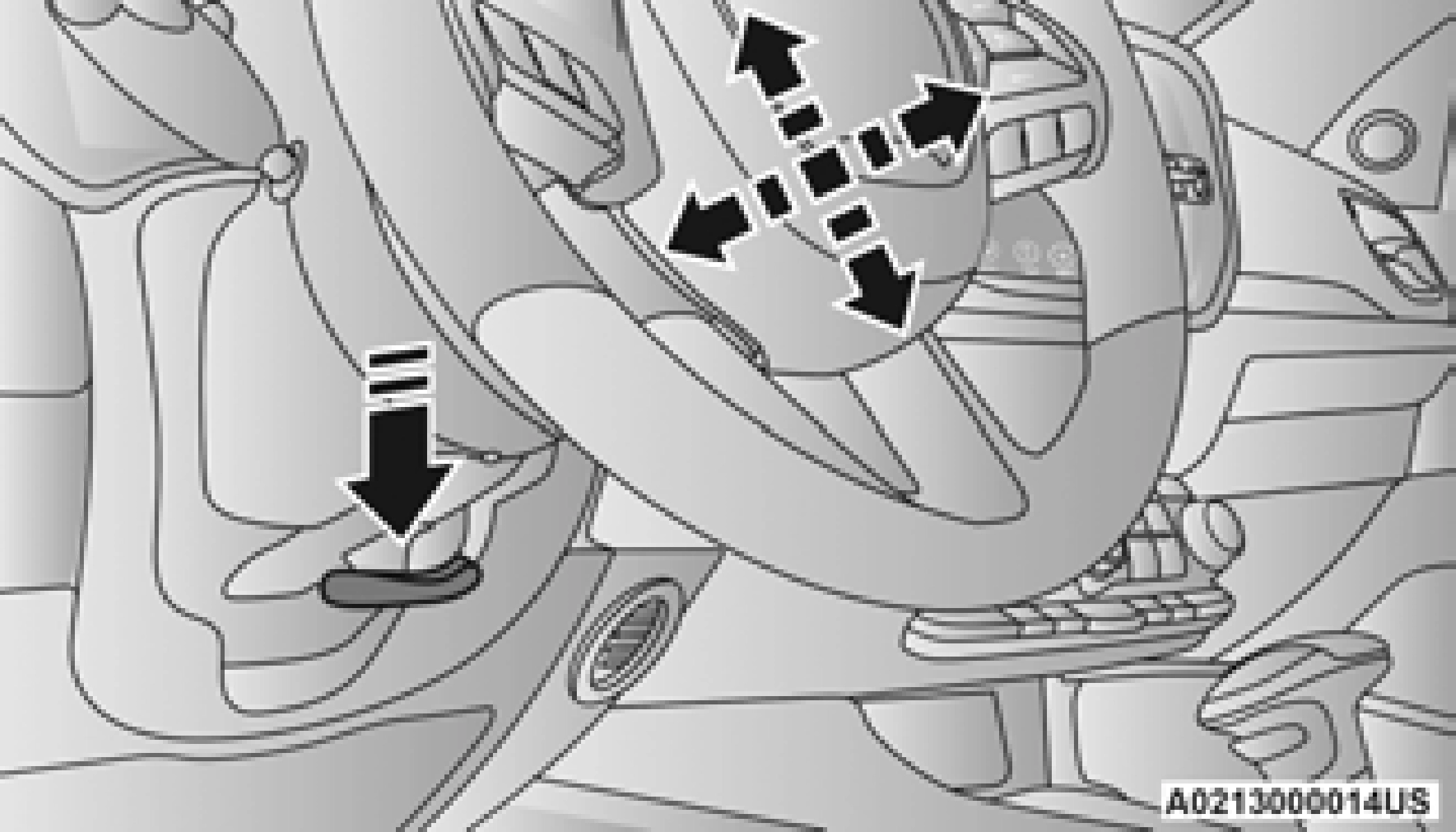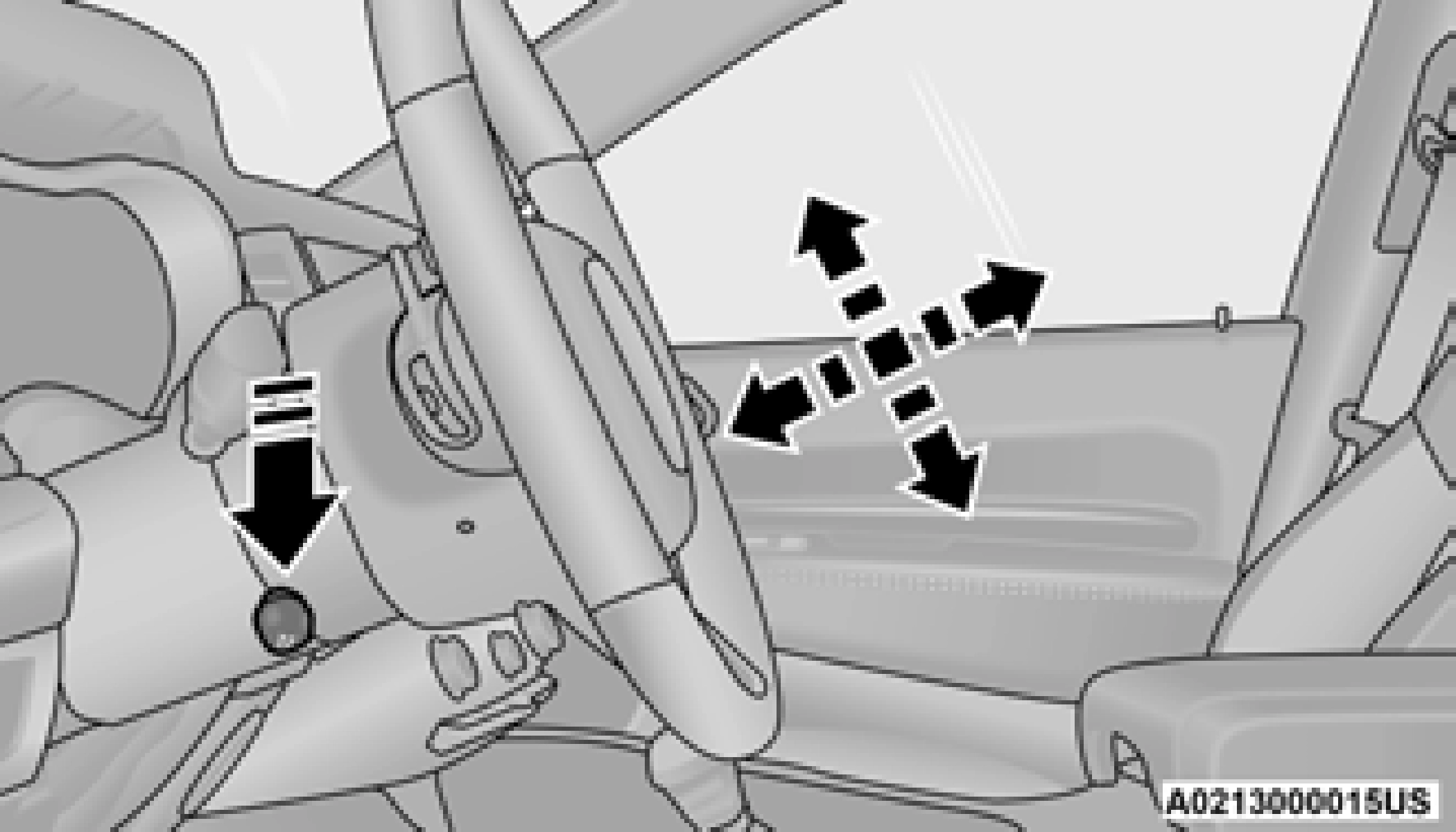 the steering column, pull the steering wheel outward or push it inward as desired. To lock the steering column in position, push the control upward until fully engaged.