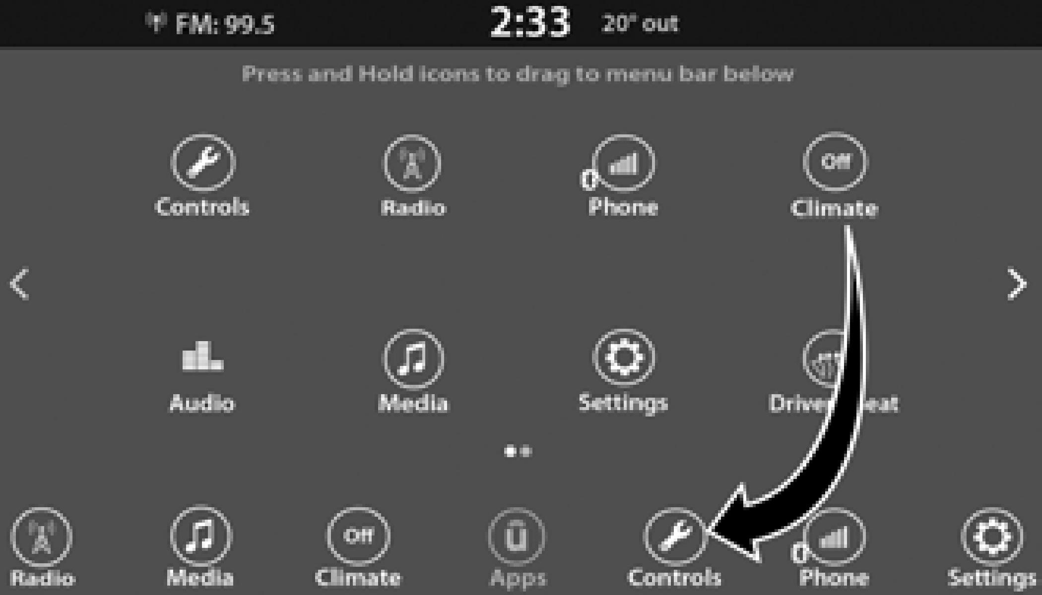 Press the Controls button to access vehicle-specific features like heated seats and steering wheel. |