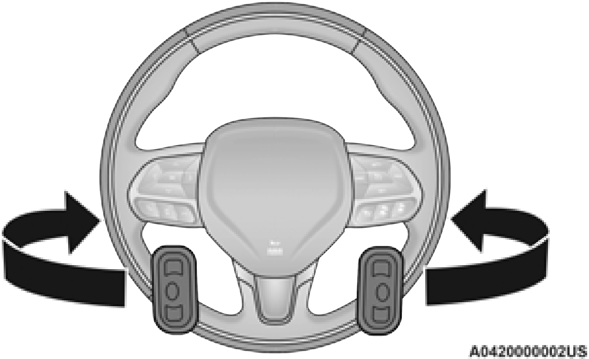 The remote sound system controls are located on the rear surface of the steering wheel at the three and nine o’clock positions.