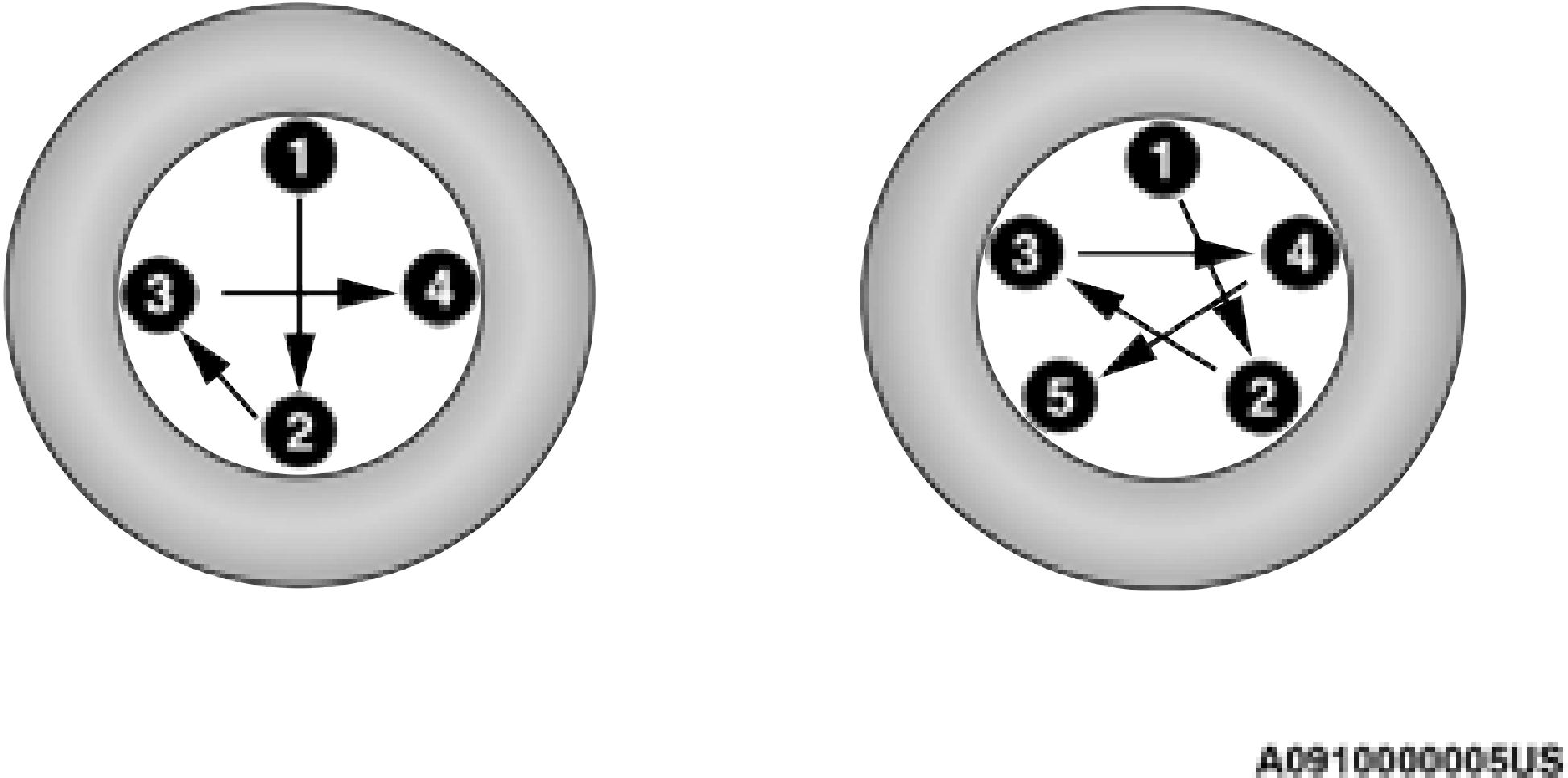 Tighten the lug nuts/bolts in a star pattern until each nut/bolt has been tightened twice. Ensure that the socket is fully engaged on the lug nut/ bolt (do not insert it half way).