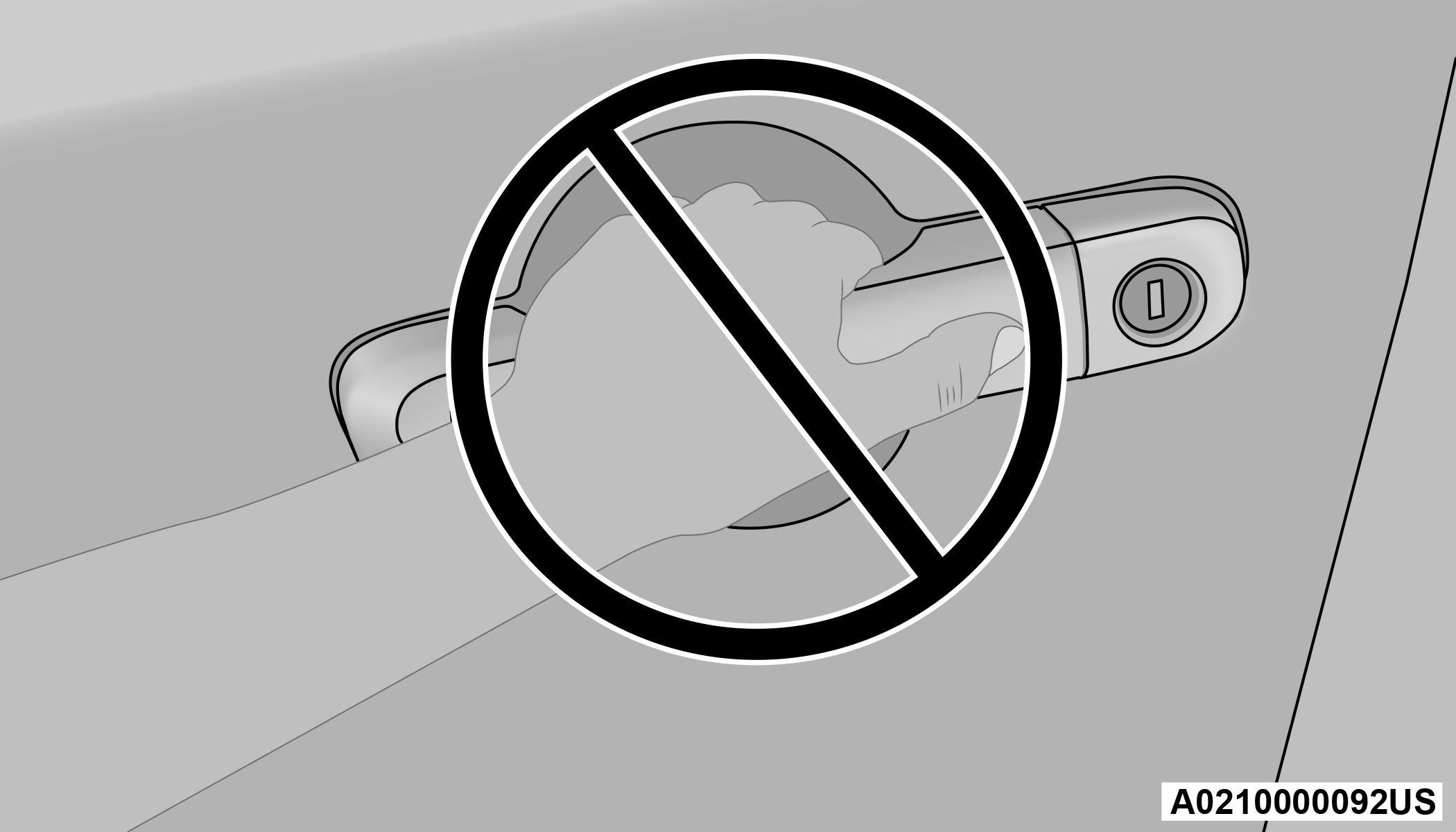 DO NOT grab the door handle when pushing the door handle lock button. This could unlock the door(s).