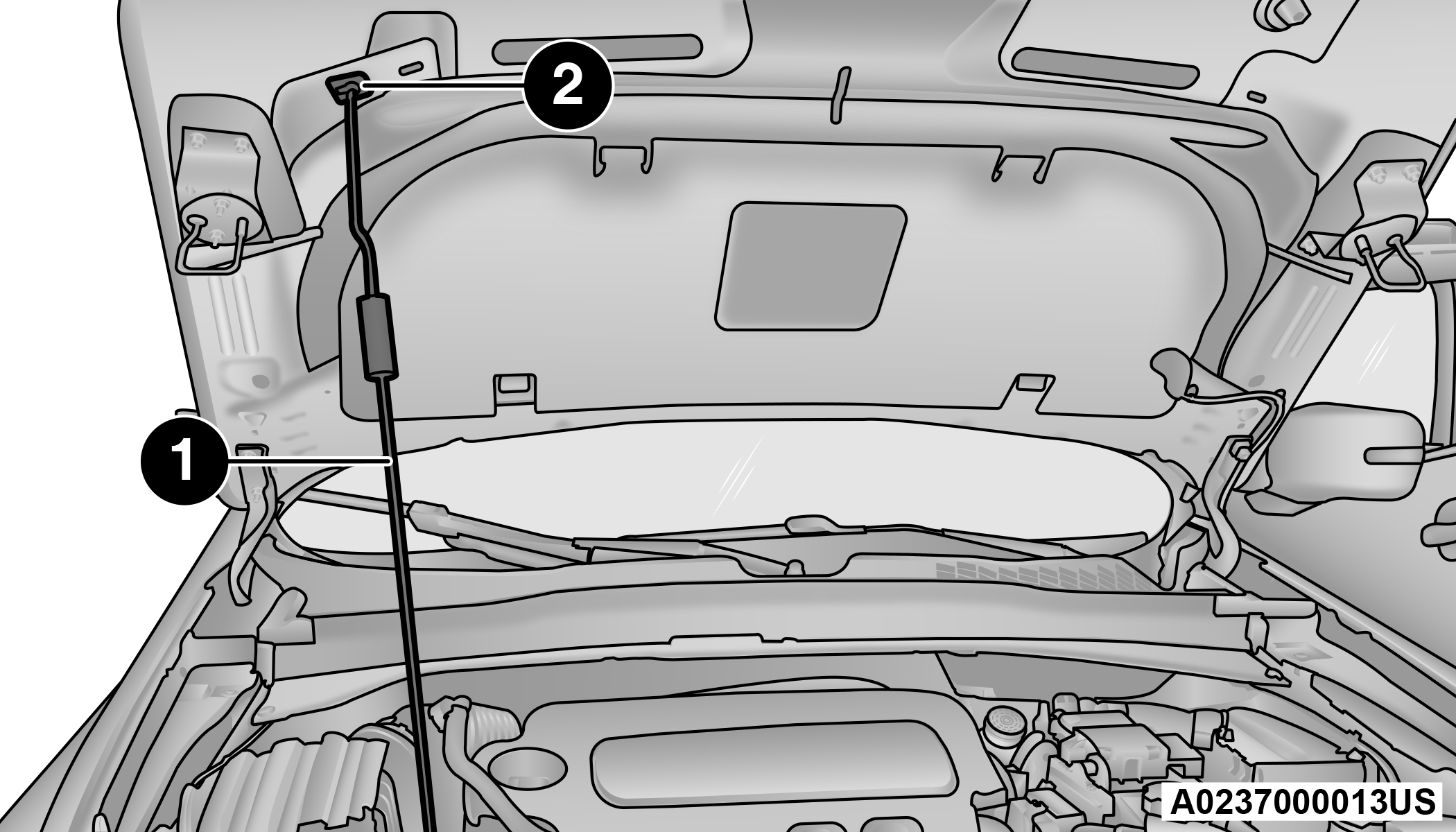 Two latches must be released to open the hood.