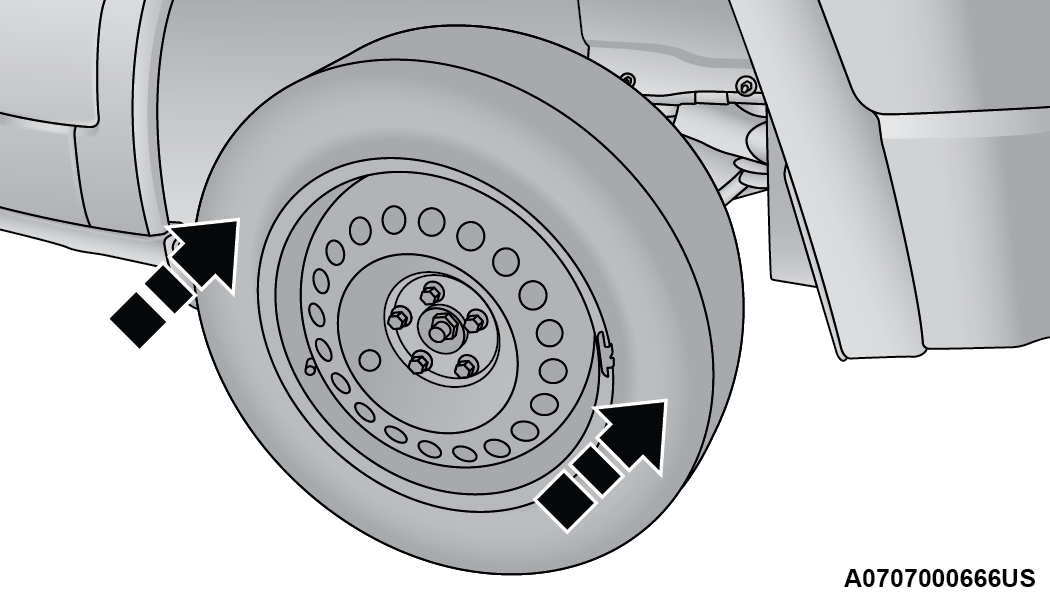 Block both the front and rear of the wheel diagonally opposite of the jacking position. For example, if changing the driver’s front tire, block the passenger’s rear wheel.
