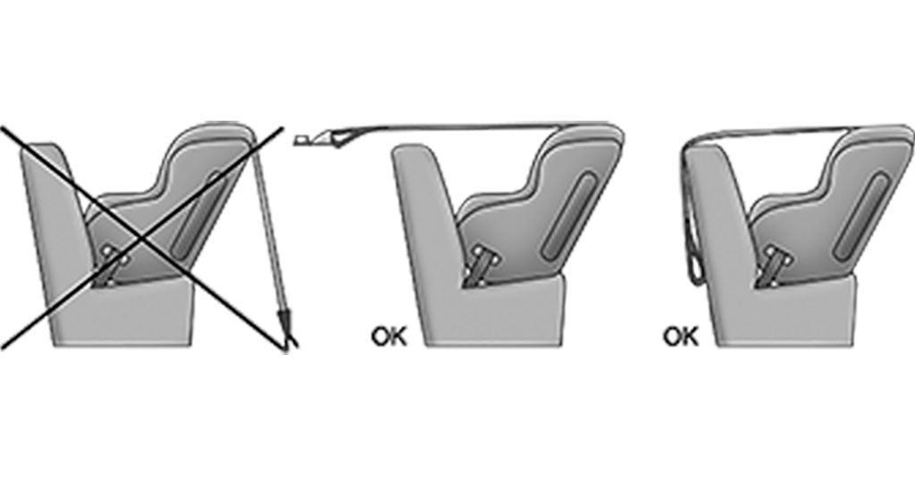 Do not attach a tether strap for a rear-facing car seat to any location in front of the car seat, including the seat frame or a tether anchorage. Only attach the tether strap of a rear-facing car seat to the tether anchorage that is approved for that seating position, located behind the top of the vehicle seat. See for the location of approved tether anchorages in your vehicle.