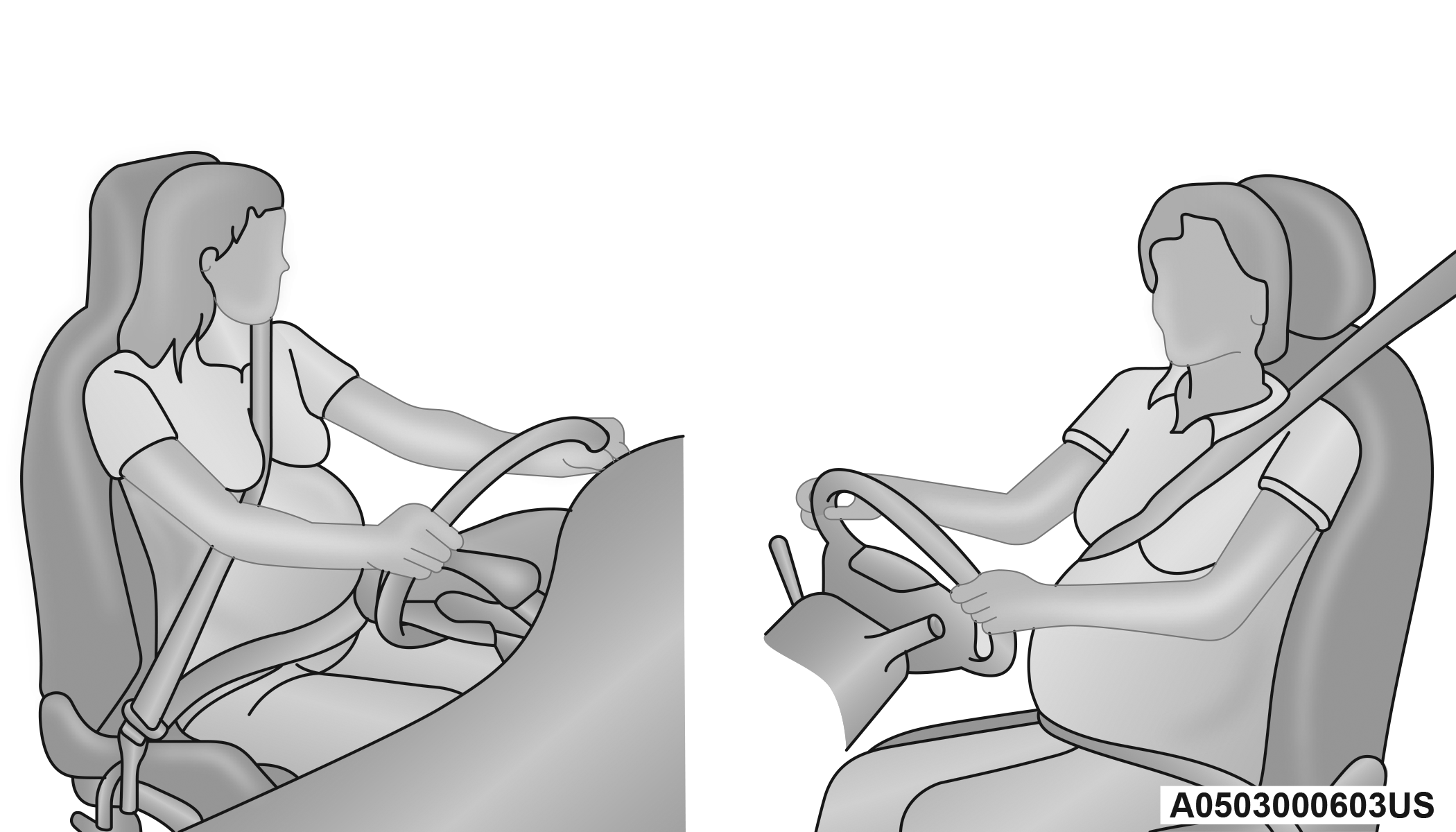 Seat belts must be worn by all occupants including pregnant women: the risk of injury in the event of an accident is reduced for the mother and the unborn child if they are wearing a seat belt.