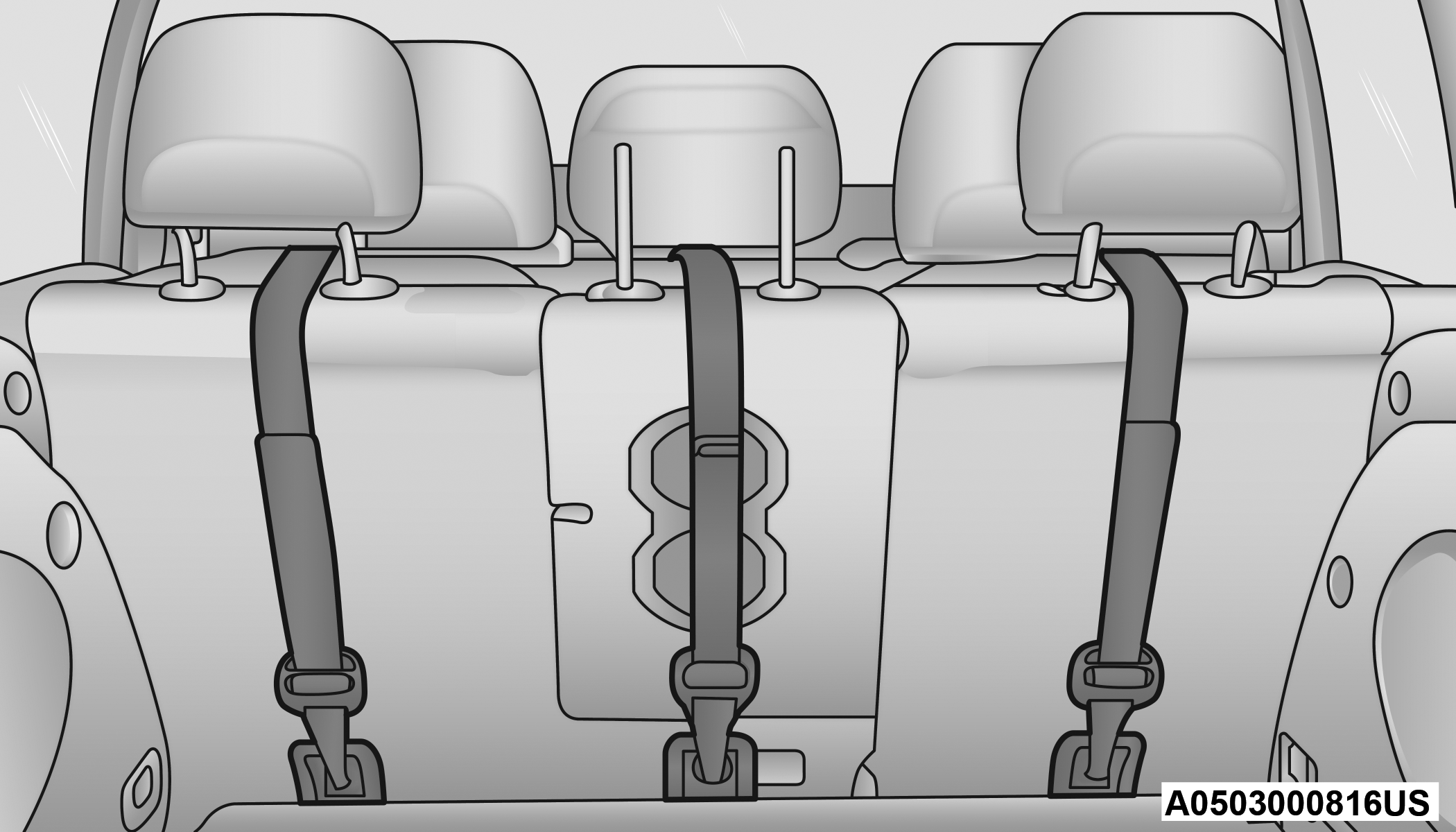 The BeltAlert warning sequence is activated when the vehicle is moving above a specified vehicle speed range and the driver or outboard front seat passenger is unbuckled (the outboard front passenger seat BeltAlert is not active when the outboard front passenger seat is unoccupied). The BeltAlert warning sequence starts by blinking the Seat Belt Reminder Light and sounding an intermittent chime. Once the BeltAlert warning sequence has completed, the Seat Belt Reminder Light will remain solid red until the driver and outboard front seat passenger are buckled. The BeltAlert warning sequence may repeat based on vehicle speed until the driver and occupied outboard front seat passenger seat belts are buckled. The driver should instruct all occupants to buckle their seat belts.