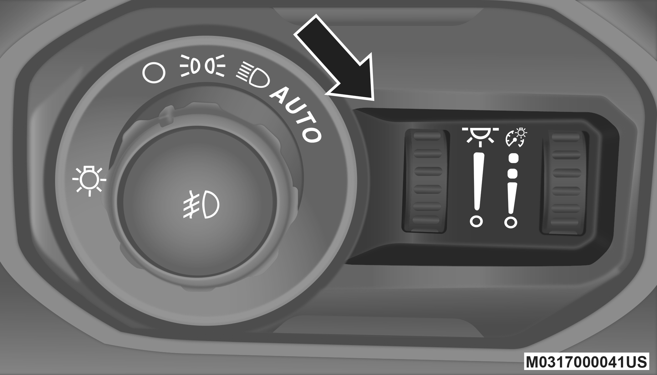 With the parking lights or headlights on, rotating the right dimmer control upward will increase the brightness of the instrument panel lights. Rotating the left dimmer control will adjust the interior and ambient light levels.