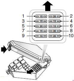 | 14 | 10 | Interior lights, clock, electric mirrors, diagnostic socket |