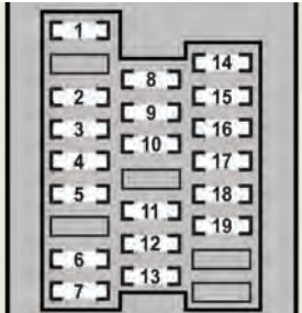 | 17 | RH-IG | 7,5 | Seat heater switches, front right door control system, rear right door control system, capacitor, combination switch, seat belt pretensioners, shift lever switch, power window |