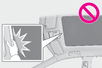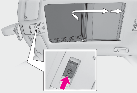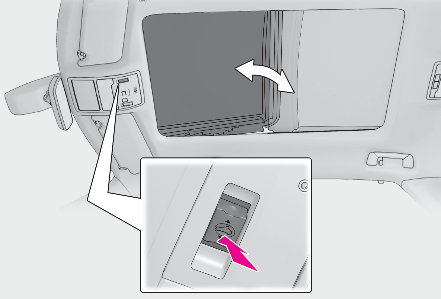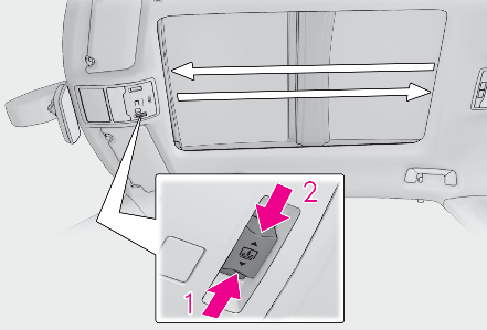 Do not let a child operate the electronic sunshade. Closing the electronic sunshade on someone can cause death or serious injury.Opening and closing the panoramic moon roofThe driver is responsible for panoramic moon roof opening and closing operations. In order to prevent accidental operation, especially by a child, do not let a child operate the panoramic moon roof. It is possible for children and other passengers to have body parts caught in the panoramic moon roof.Check to make sure that all passengers do not have any part of their body in a position where it could be caught when the panoramic moon roof is being operated.