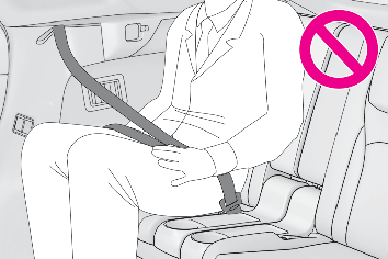 Make sure that all occupants are wearing their seat belts before driving the vehicle.WARNING:Observe the following precautions to reduce the risk of injury in the event of sudden braking, sudden swerving or an accident.Failure to do so may cause death or serious injury.Wearing a seat beltEnsure that all passengers wear a seat belt.Always wear a seat belt properly.Each seat belt should be used by one person only. Do not use a seat belt for more than one person at once, including children.Lexus recommends that children be seated in the rear seat and always use a seat belt and/or an appropriate child restraint system.To achieve a proper seating position, do not recline the seat more than necessary. The seat belt is most effective when the occupants are sitting up straight and well back in the seats.Do not wear the shoulder belt under your arm.Always wear your seat belt low and snug across your hips.RX350L: Do not let third-row seat passengers to use second-row seat seat belts.