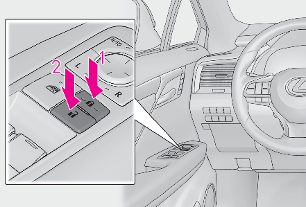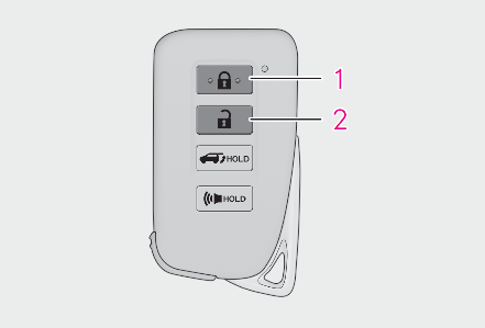 Locks all the doorsCheck that the door is securely locked.Unlocks all the doorsPressing the button unlocks the driver’s door. Pressing the button again within 3 seconds unlocks the other doors.Press and hold to open the windows*2 and the moon roof*1, 2 or panoramic moon roof*1, 2*1If equipped*2This setting must be customized at your Lexus dealer.Note:Switching the door unlock functionIt is possible to set which doors the entry function unlocks using the wireless remote control.Turn the engine switch off.When the indicator light on the key surface is not on, press and hold , or for approximately 5 seconds while pressing and holding .The setting changes each time an operation is performed, as shown below. (When changing the setting continuously, release the buttons, wait for at least 5 seconds, and repeat step 2.)