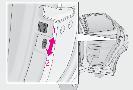 Locks all the doorsUnlocks all the doorsINSIDE LOCK BUTTONS (TO LOCK)Push down the inside lock button to lock the door.