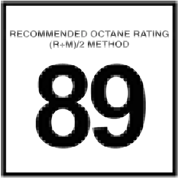 unleaded gasoline having an octane range of 87 to 89 as specified by the (R+M)/2 method. The use of 89 octane “Plus” gasoline is recommended for optimum performance and fuel economy.