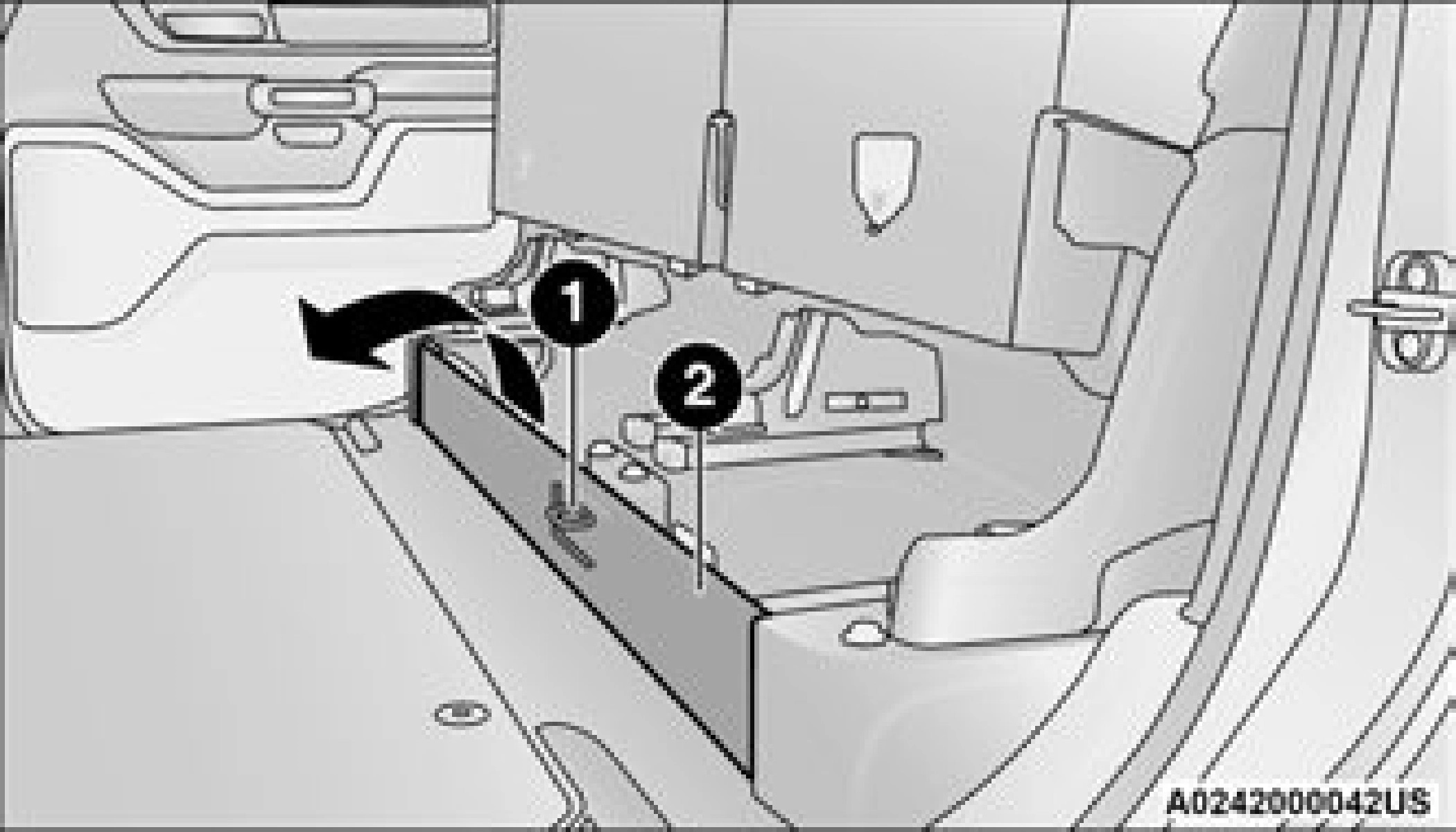 1 — Lock Mechanism 2 — Front Of Seat Base
