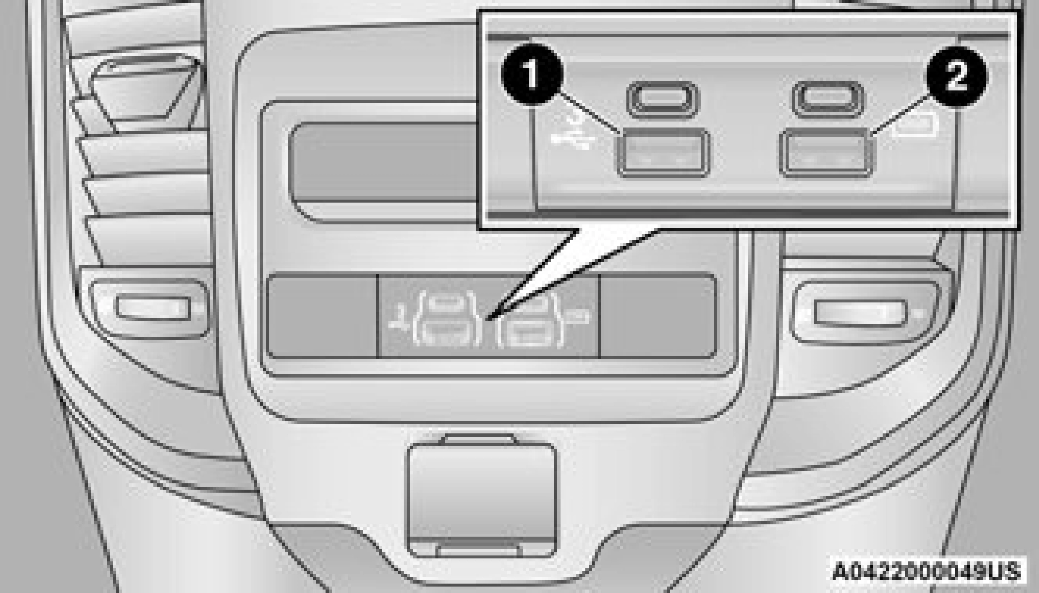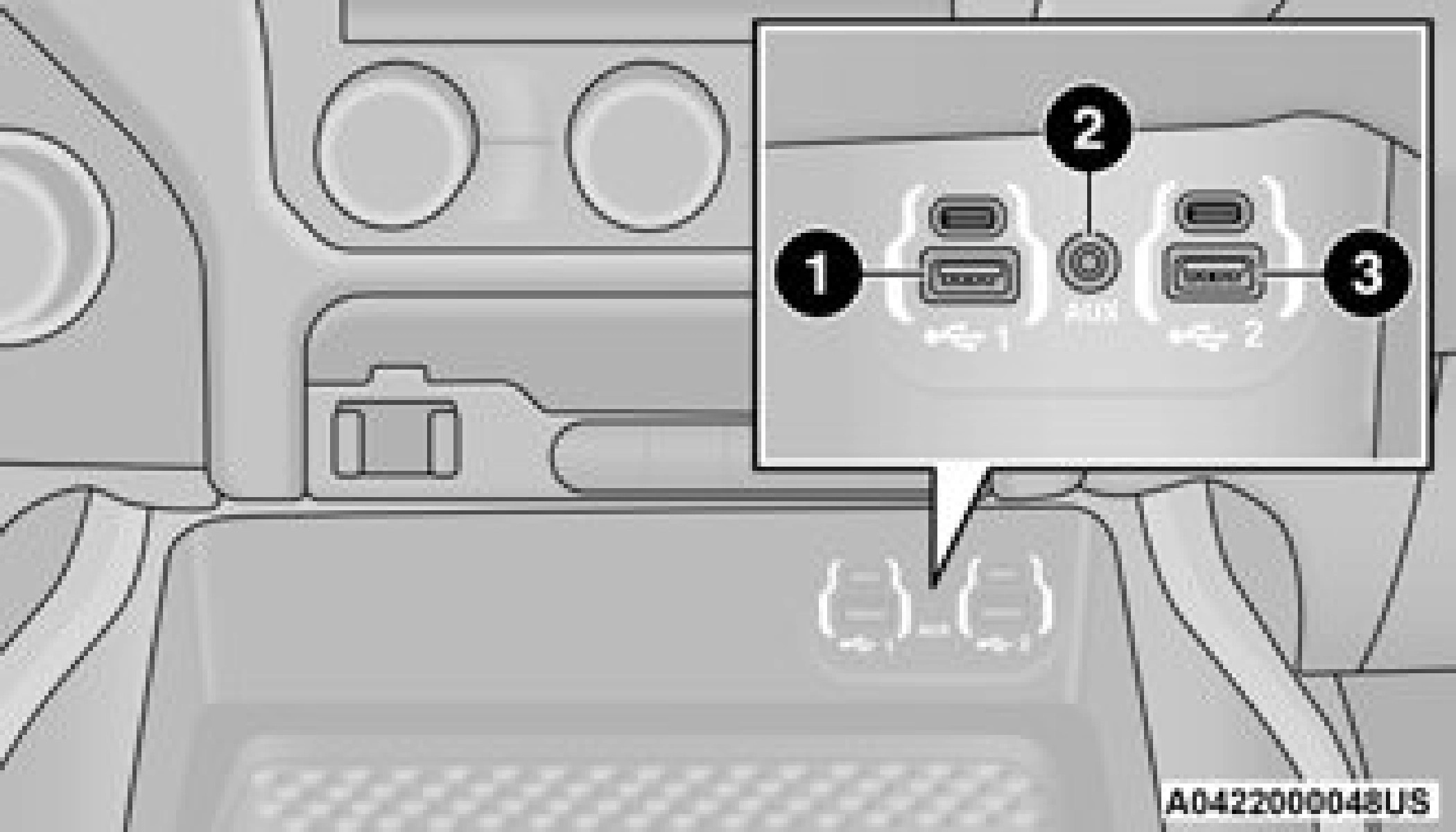 The third and fourth USB ports are located behind the center console, above the power inverter. One of these USBs ports are charge only.