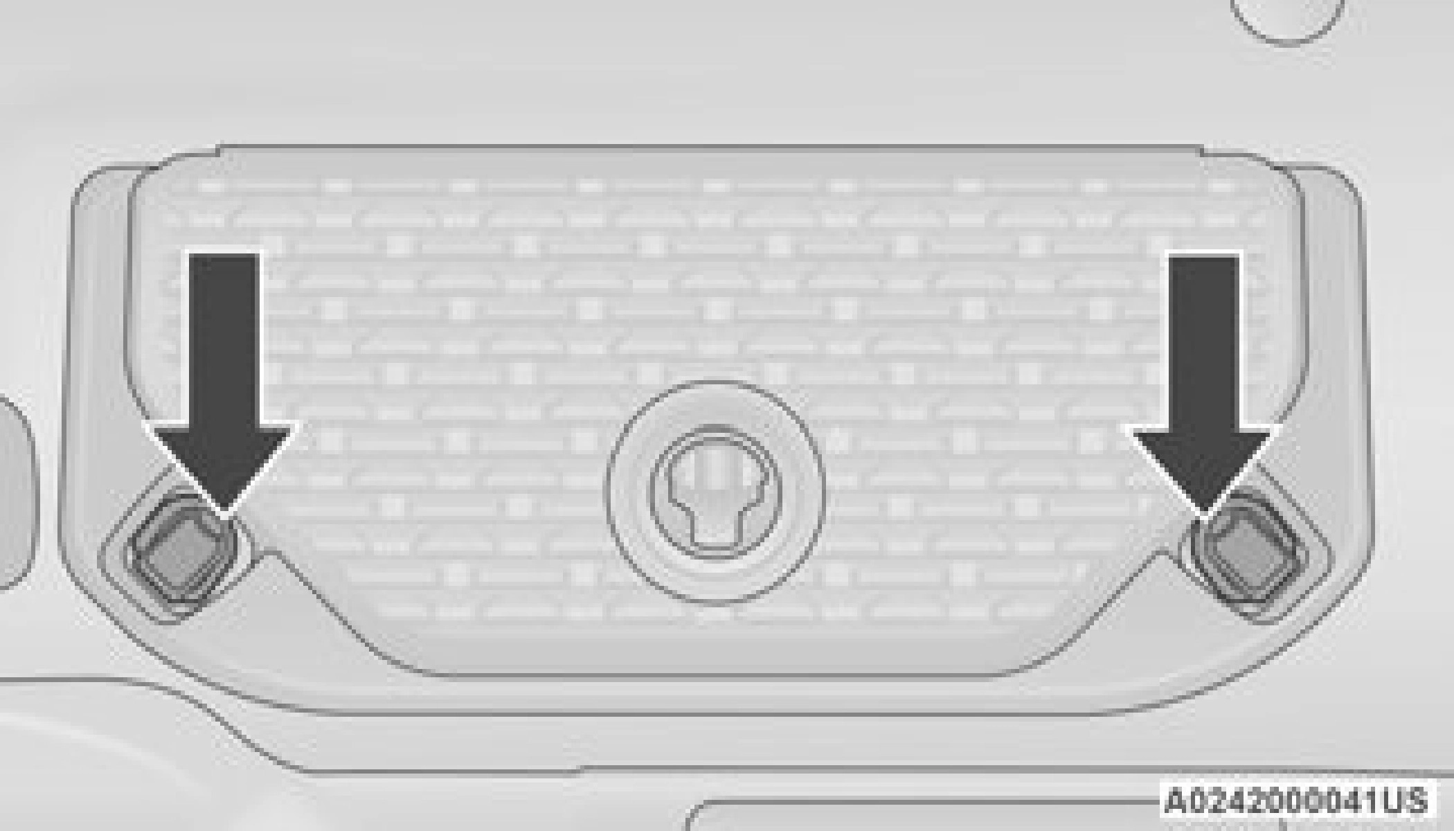 At the front of the overhead console, a compartment is provided for the storage of one pair of sunglasses.