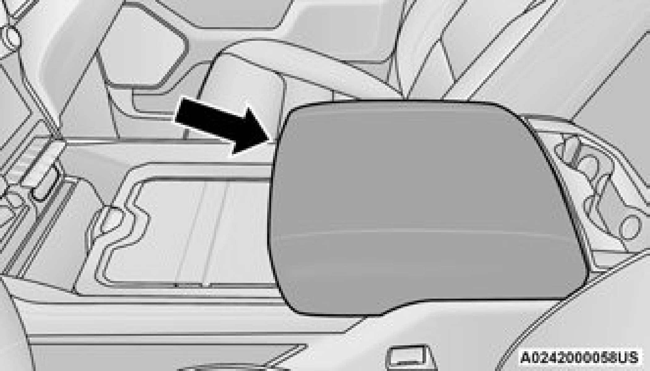 With the seatback in the upright position, lift the center seat bottom to access additional storage underneath the seat.