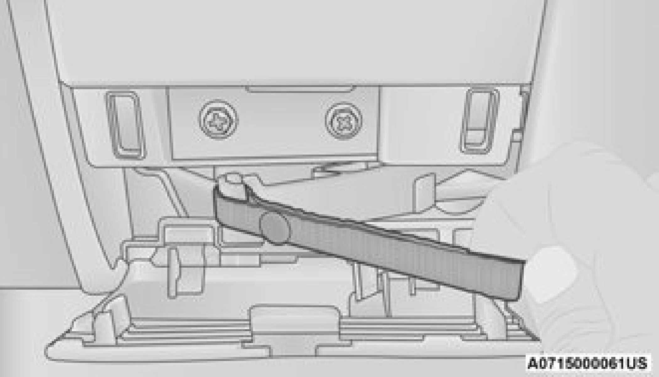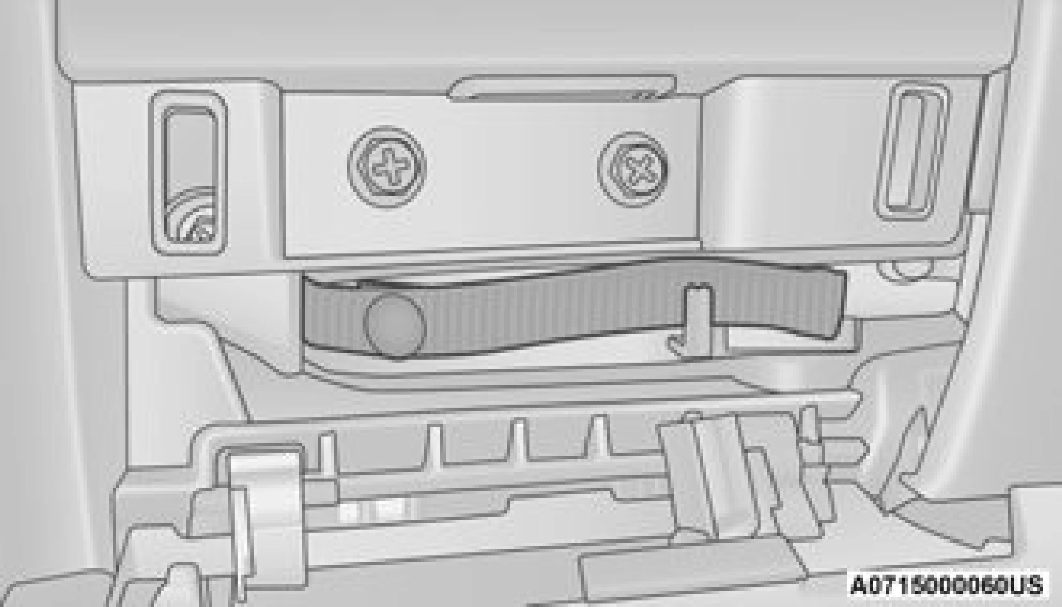 Behind the Manual Park Release access cover is the orange tether strap. Pull the tether strap out as far as it will go, then release it. The tether and lever will remain outside of the trim panel and the transmission should now be in NEUTRAL, allowing the vehicle to be moved.