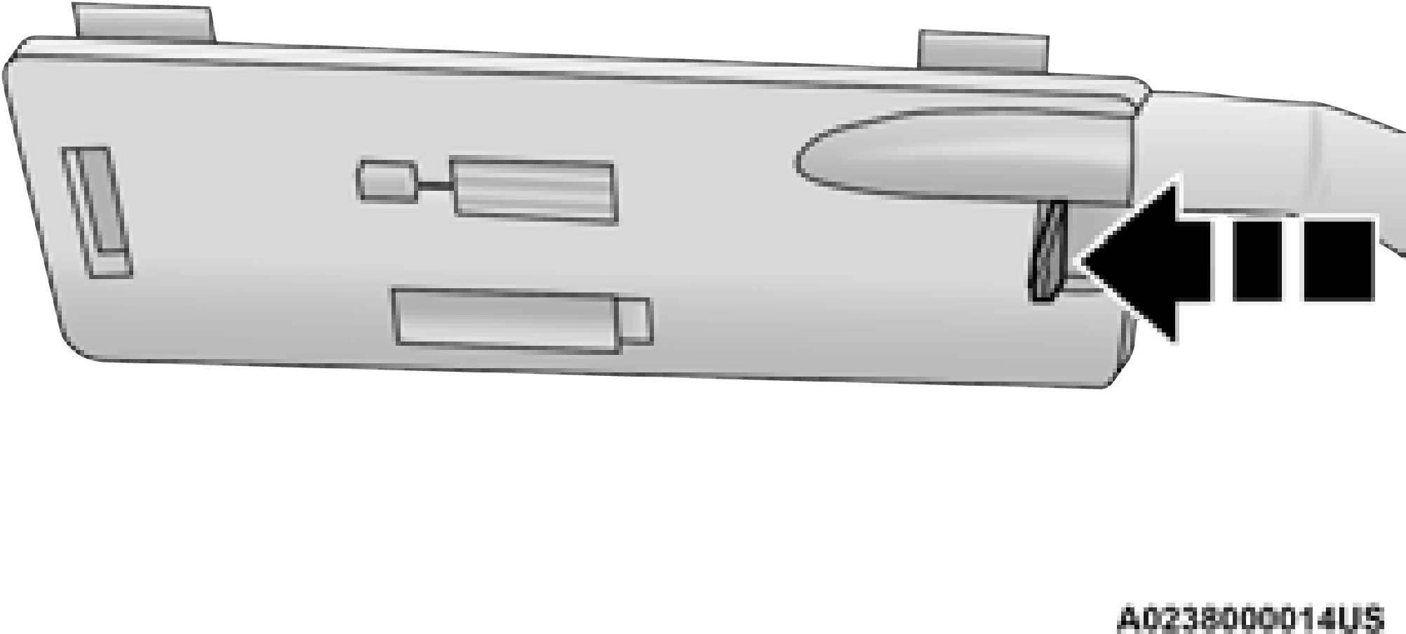 To extend the bed step, place your foot on the protruding foot tab located on the left edge of the bed step, and push rearward. A small amount of force will release the spring load, and extend the bed step out and away from the tailgate.