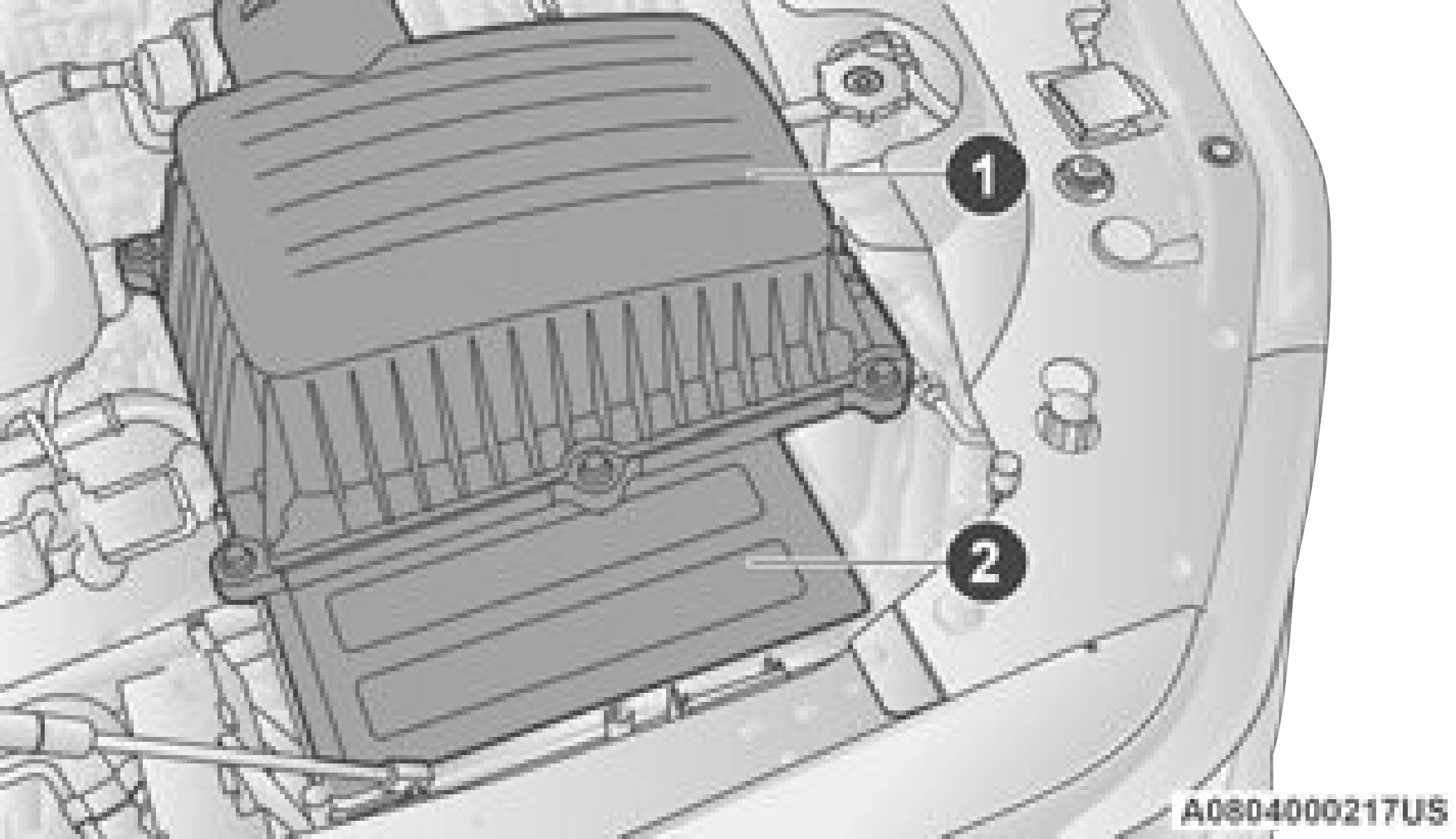 Engine Air Cleaner Filter 1 — Engine Air Cleaner Filter Cover 2 — Engine Air Cleaner Filter